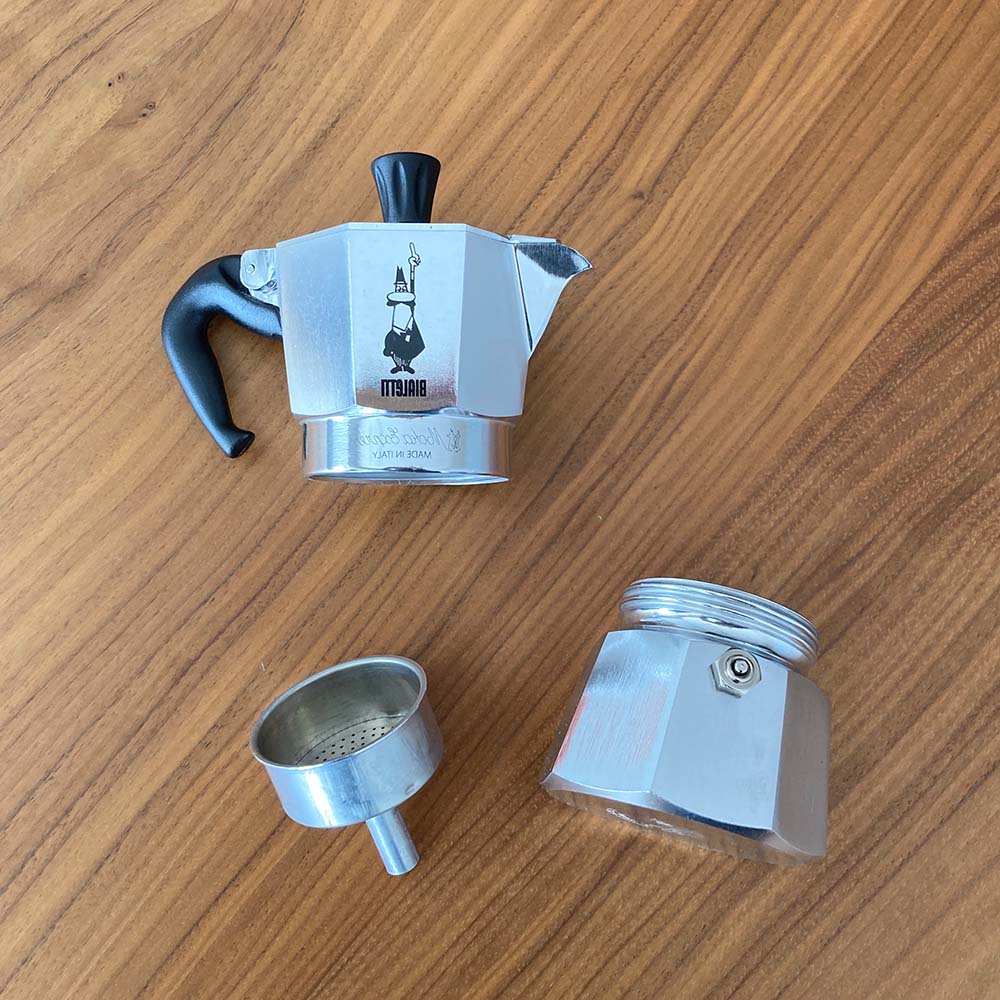 直火にかけるだけで本格的なエスプレッソが作れるこちら。主なパーツは・水を入れるボイラー(下の部分)