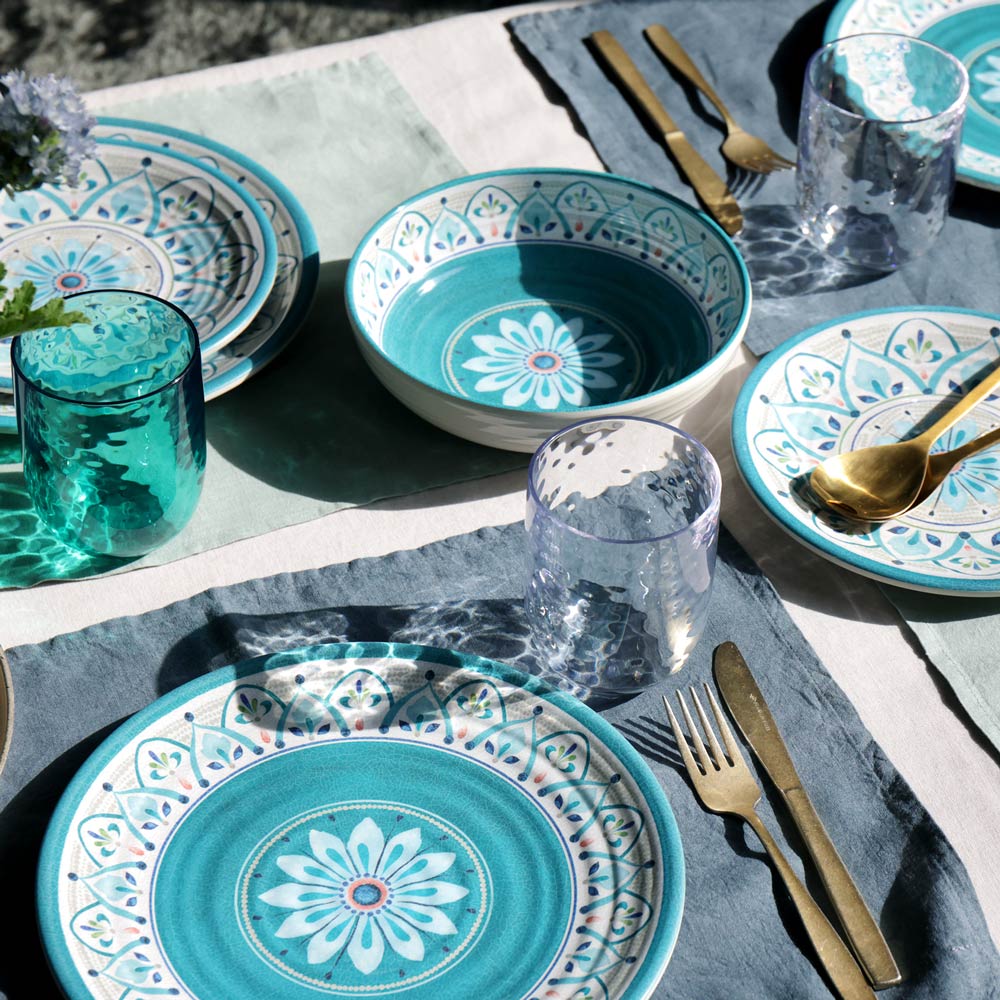 モロッコの伝統的な建物のタイルをイメージしたモロッカン柄。エキゾチックなデザインがテーブルコーディネートを盛り上げます。