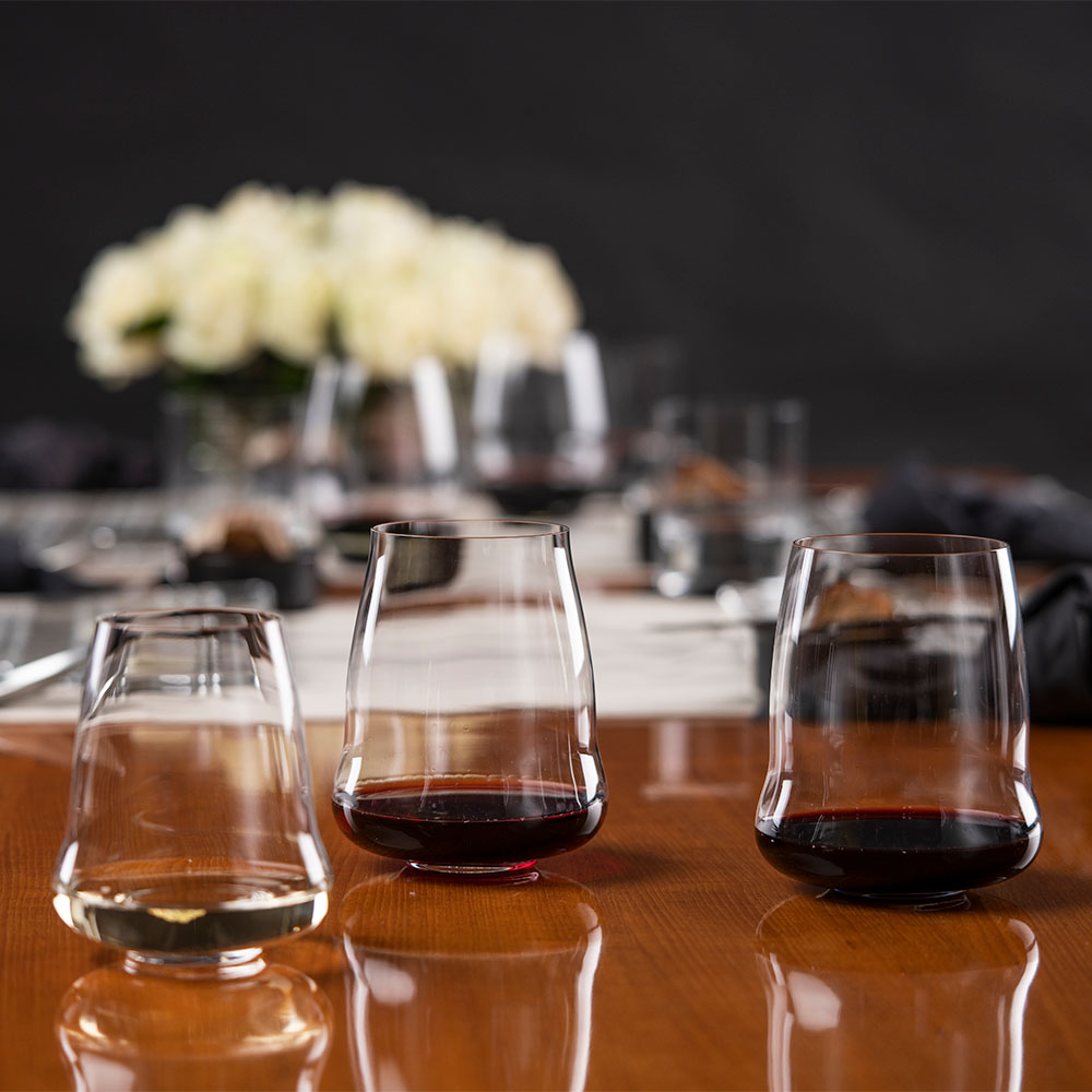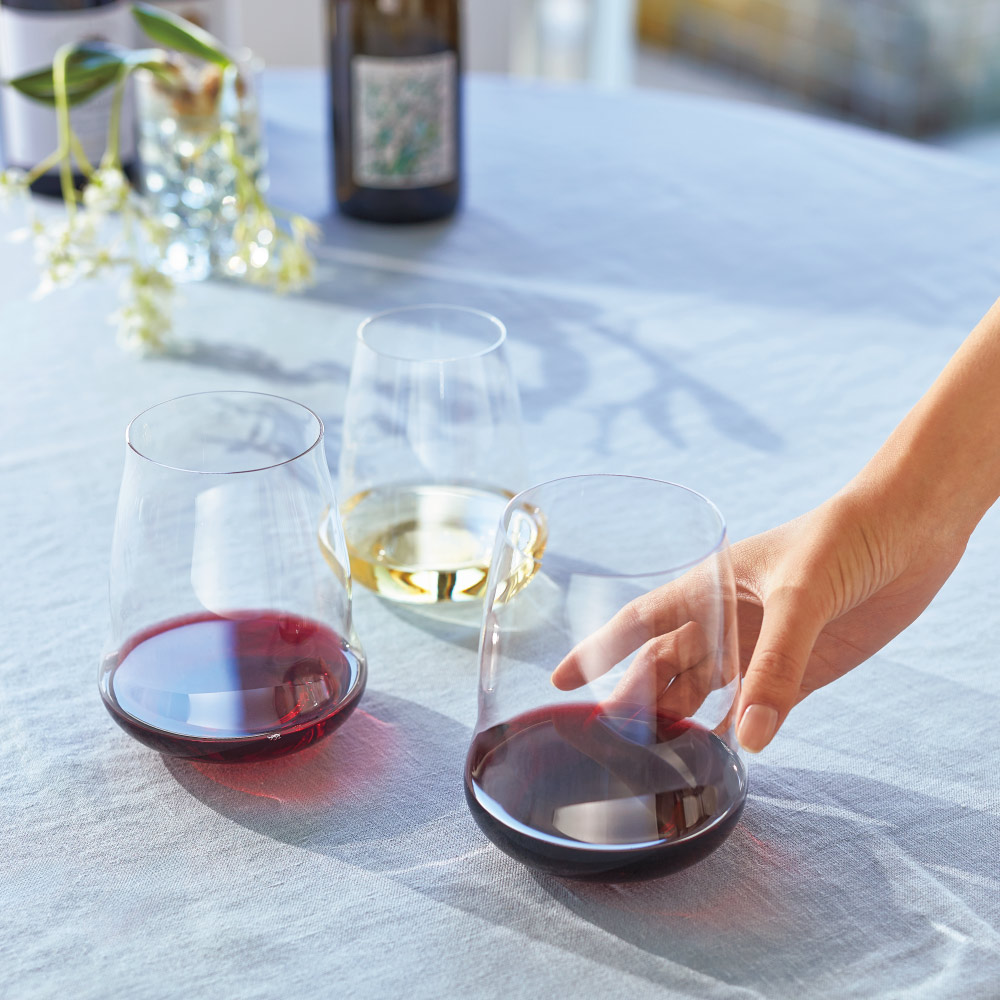 脚のないカジュアルなデザインながら、リーデルならではの美しい曲線とバランスのよさ。持ちやすく、安定感のあるフォルムは、日常使いにもぴったりです。食洗器の使用もOKで扱いやすく収納のしやすさも魅力です。パーティーから日常の癒しまで