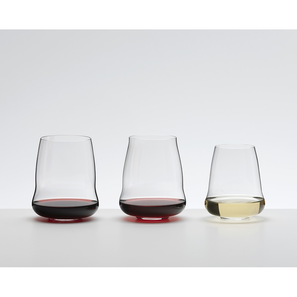 人気の<リーデル・ワインウイングス シリーズ>の機能性をそのままに、ステム(脚)をなくして生まれたワインタンブラーです。フラットで横に広がった独特のボトム形状により、ワインが空気と触れる表面積が広がり、アロマがしっかりと引き出されます。また、グラス側面の絶妙な窪みが指に自然となじむため、持ちやすさにもこだわっています。大ぶりな赤ワイン用グラスも片手でしっかり掴める、こだわりの設計です。普段使いにぴったりな多彩なラインナップ