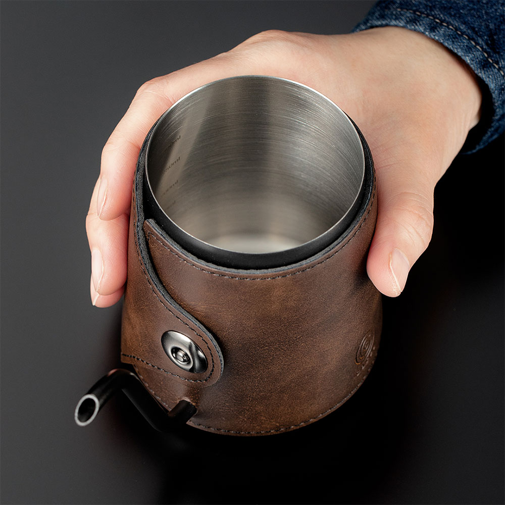 取っ手や蓋を無くして本体を掴む構造にしたことで、手と注ぎ口の距離が近くなり、重さを感じずに安定して狙った箇所に確実にドリップすることができます。