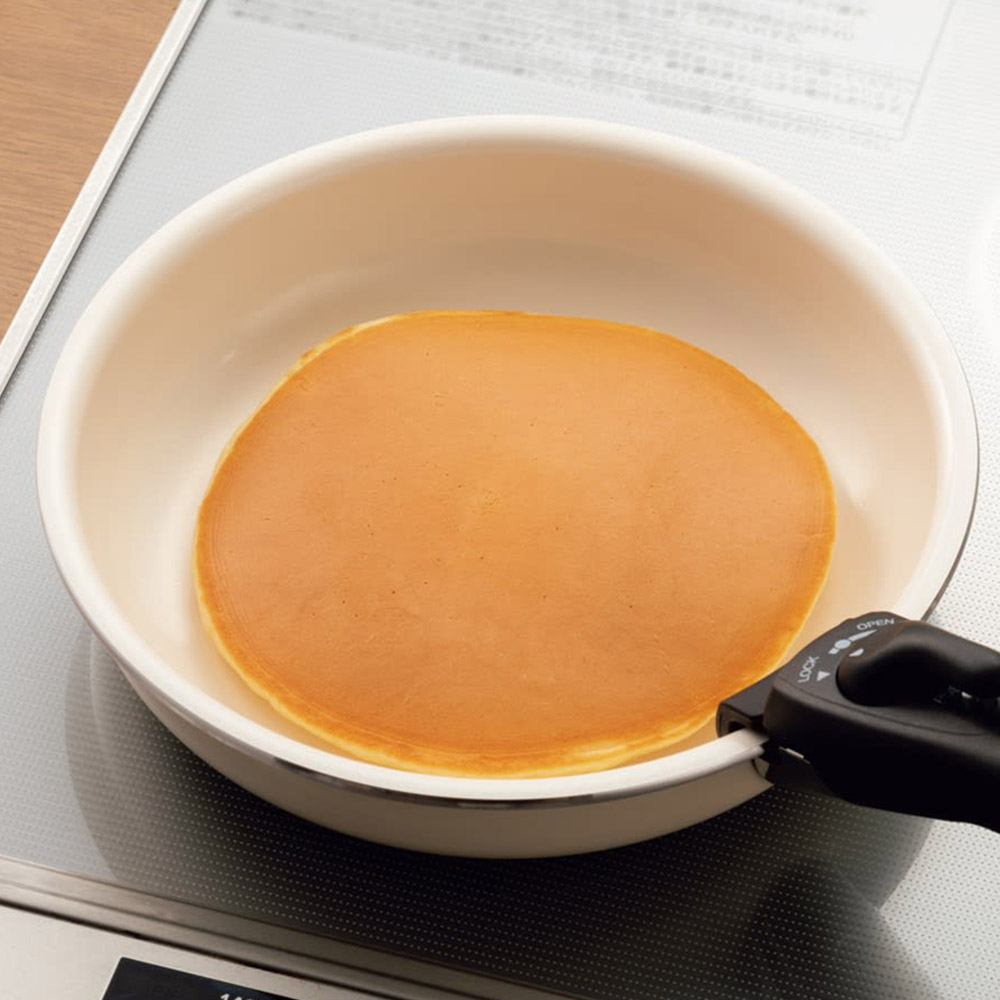 フライパン20cmは朝食やお弁当の準備に使い勝手がよいと人気です。深さが約4cmあるので煮込み料理も得意。1人分の調理やサブのフライパンとして使いやすい大きさです。