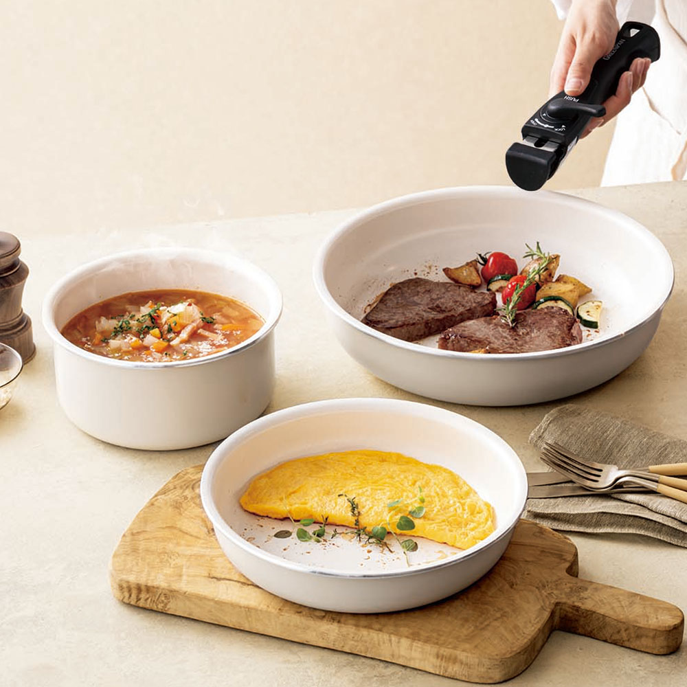 ハンドルが取り外せることで、収納性も調理の幅もグンとアップします。