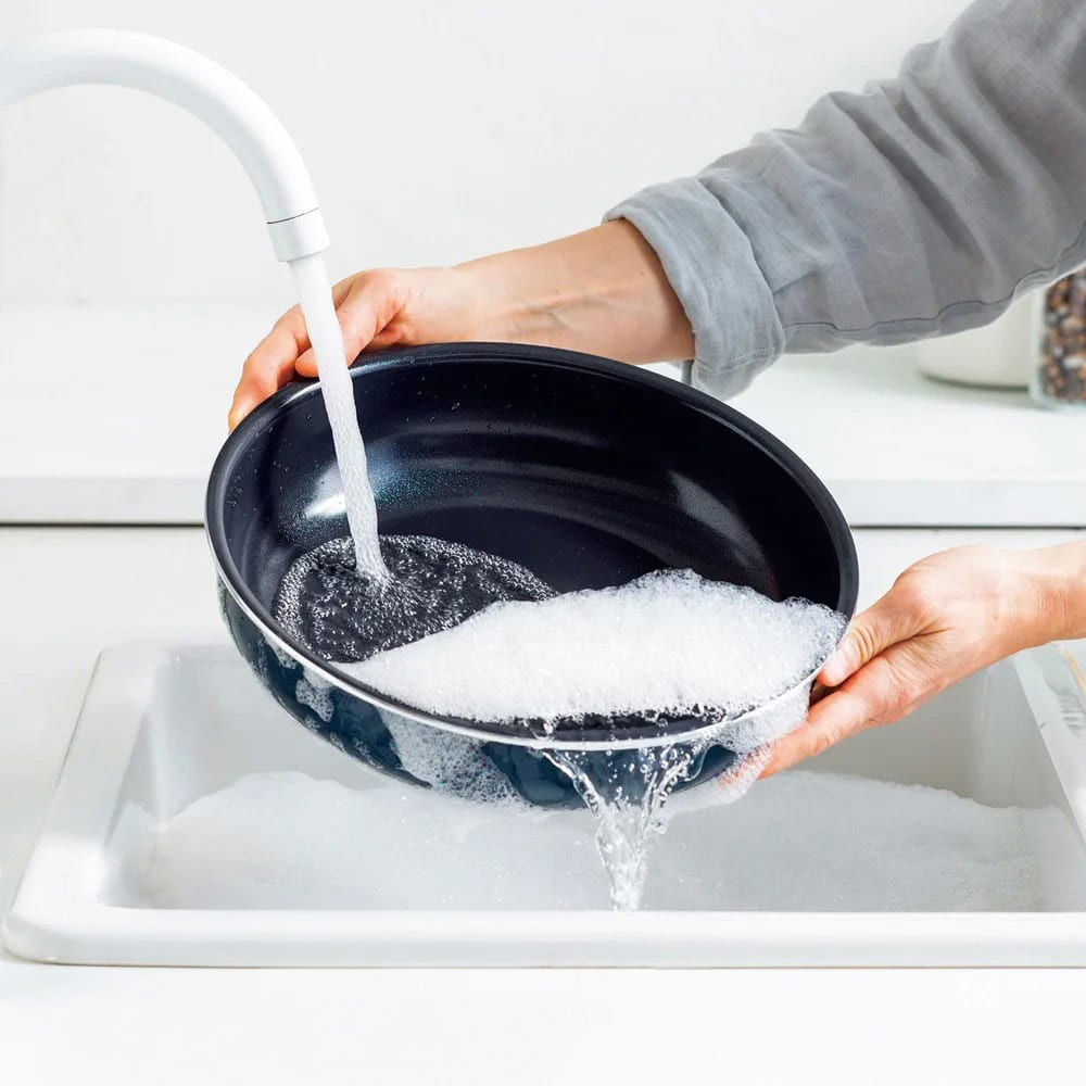 フライパン本体は食洗機に対応!ハンドルが取れるので食洗機にも入れやすく、庫内のスペースも無駄にしません。 ※ハンドルは食洗機をご使用いただけません。
