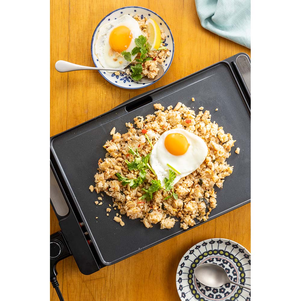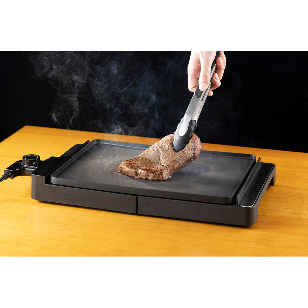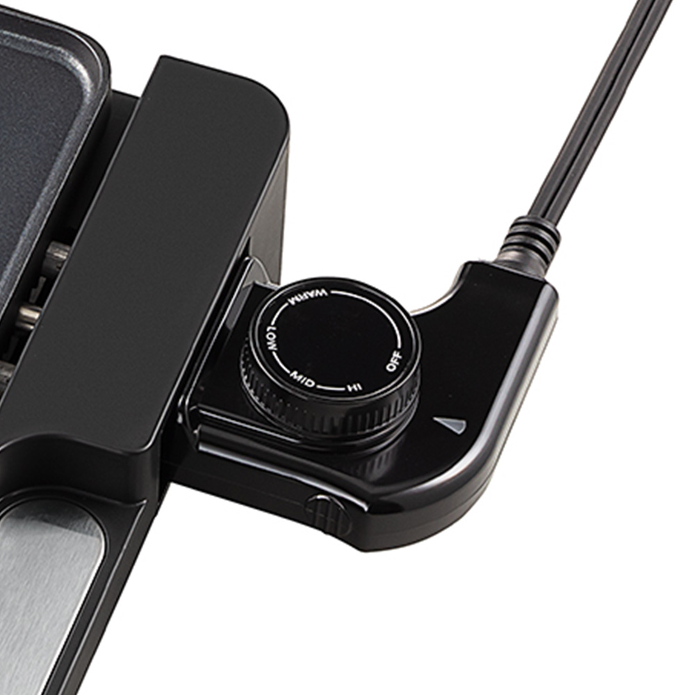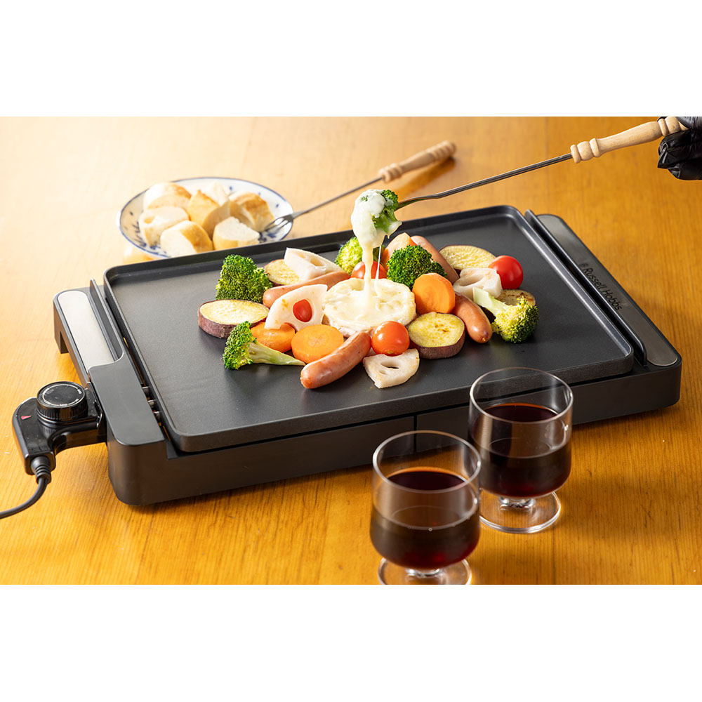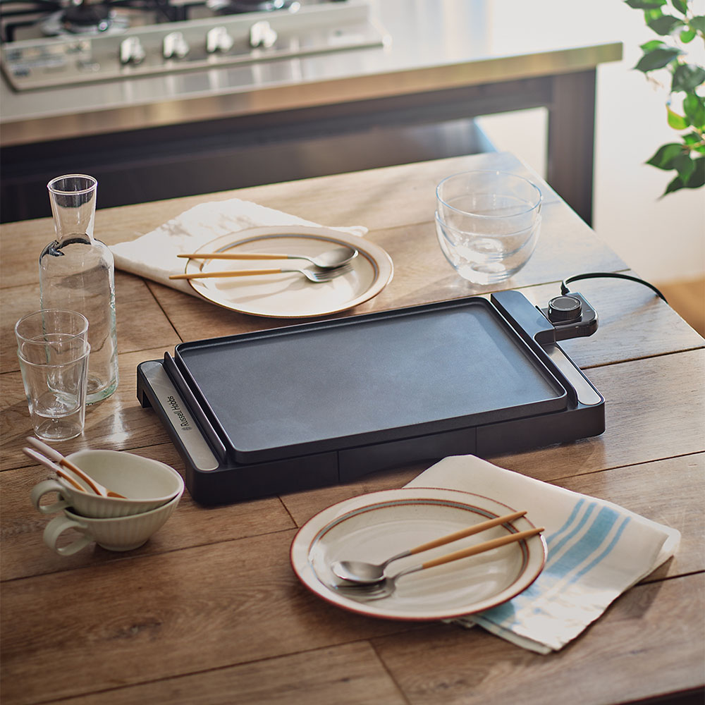 80℃から230℃まで、ダイヤル一つで自由自在に温度調節。お好み焼き、焼肉、もんじゃ焼き、パンケーキ…一台で多彩なレシピが楽しめます。食卓での保温も細やかに対応可能。スリム&軽量。サブ機にもメインにも