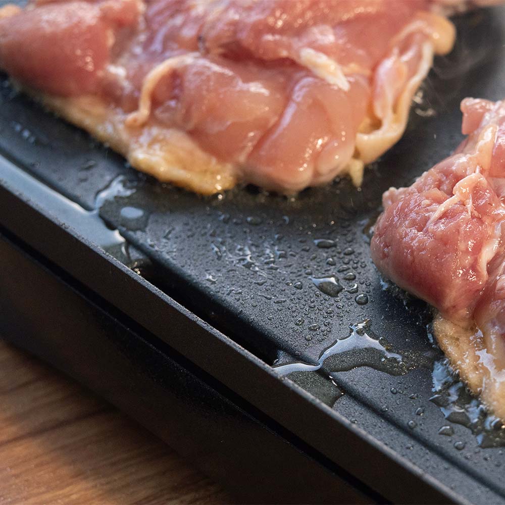 プレートとヒーターの一体型設計により、熱伝導がすごい!スイッチを入れてから約2分で約200℃以上に到達する高火力で、お肉もお野菜もおいしく焼き上げます。丸ごと洗えて、いつも清潔
