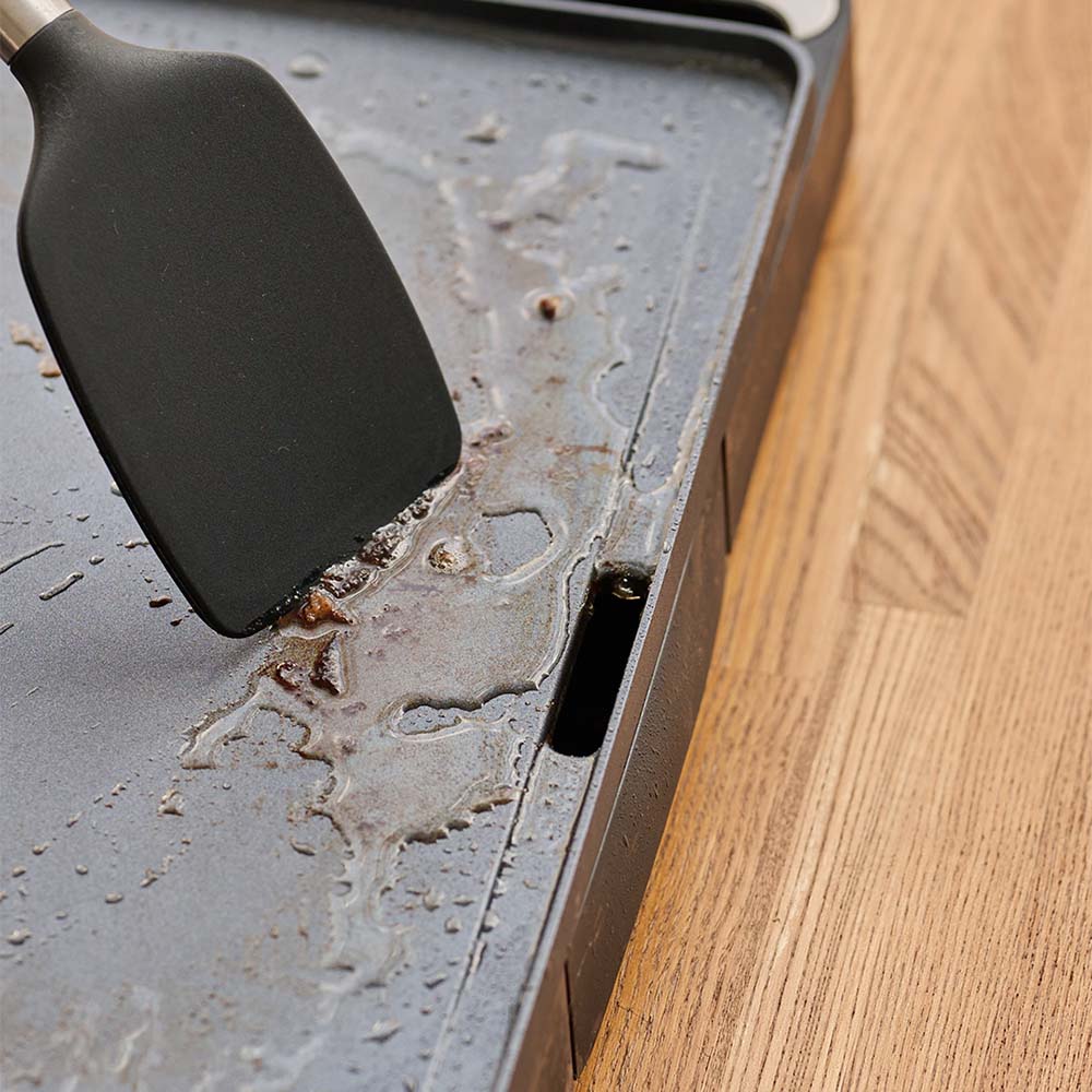 プレートの端には油を逃せる穴が開いています。余分な油を落とせるのですっきり、きれいに焼き続けられます。