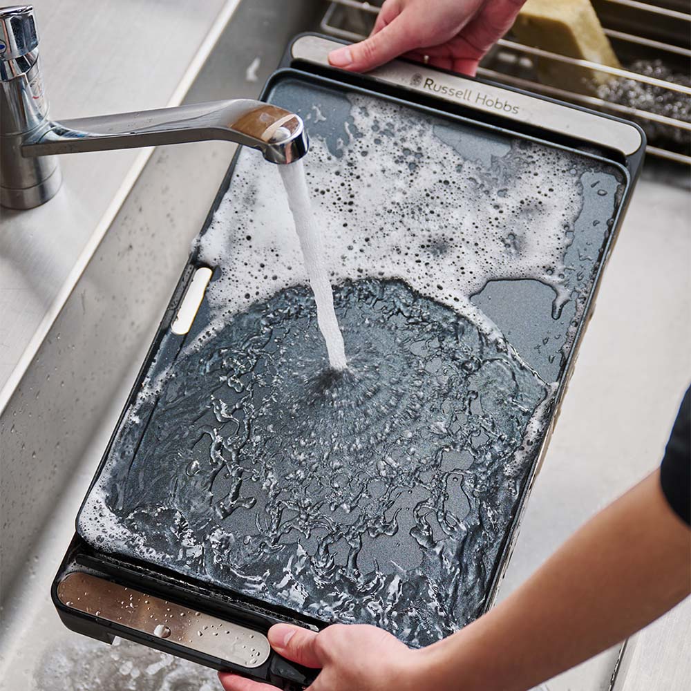 IPX6の防水設計で、本体ごと丸洗いが可能。一体型なら隙間に入った食材を水流で洗い流すことができます。調理中もプレートがずれる心配がなく、安定した使用ができます。
