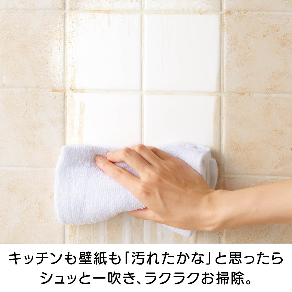 キッチンも壁紙も「汚れたかな」と思ったらシュッと一吹き、ラクラクお掃除。