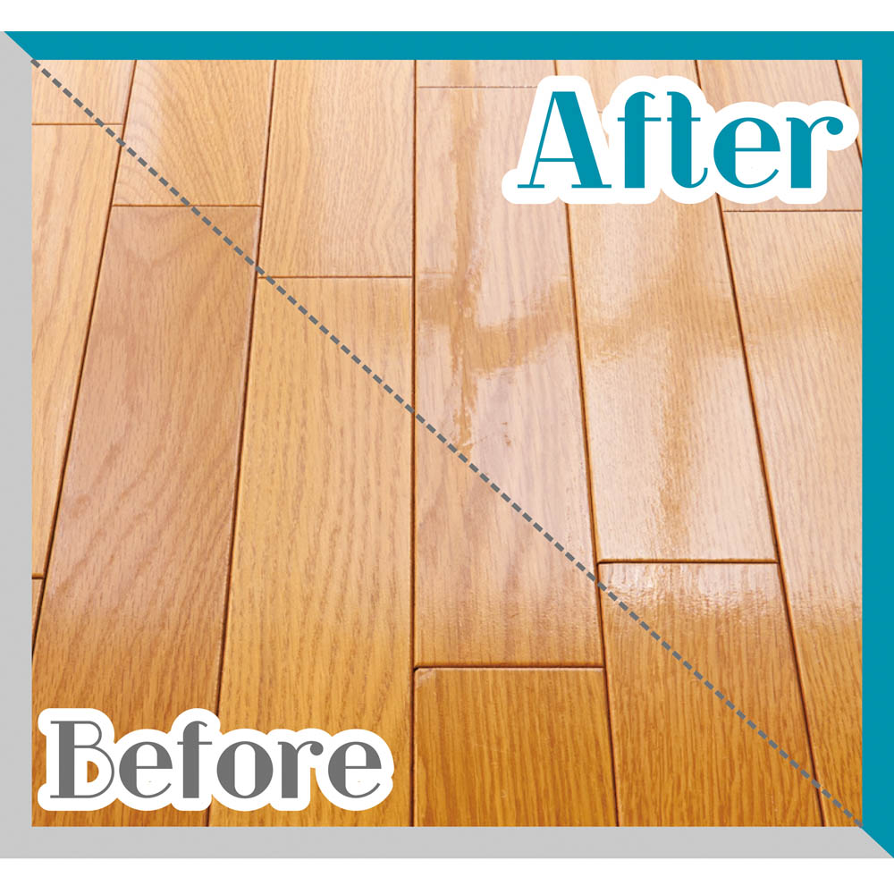 市販のワックスにありがちな滑りやすい、長持ちしない、塗るのが面倒といった悩みを解消しました。ウレタン樹脂とアクリル樹脂を特殊配合した高級タイプのためで、粒子が細かく密着性に優れ、薄く塗るだけで強力な皮膜を作ります。ウエット感のある光沢が美しく、耐久性もgood。滑りにくく足触りもソフト。伸びが良く乾きが早く、から拭き不要で初めての方でも6畳間が5分程度で完了します。