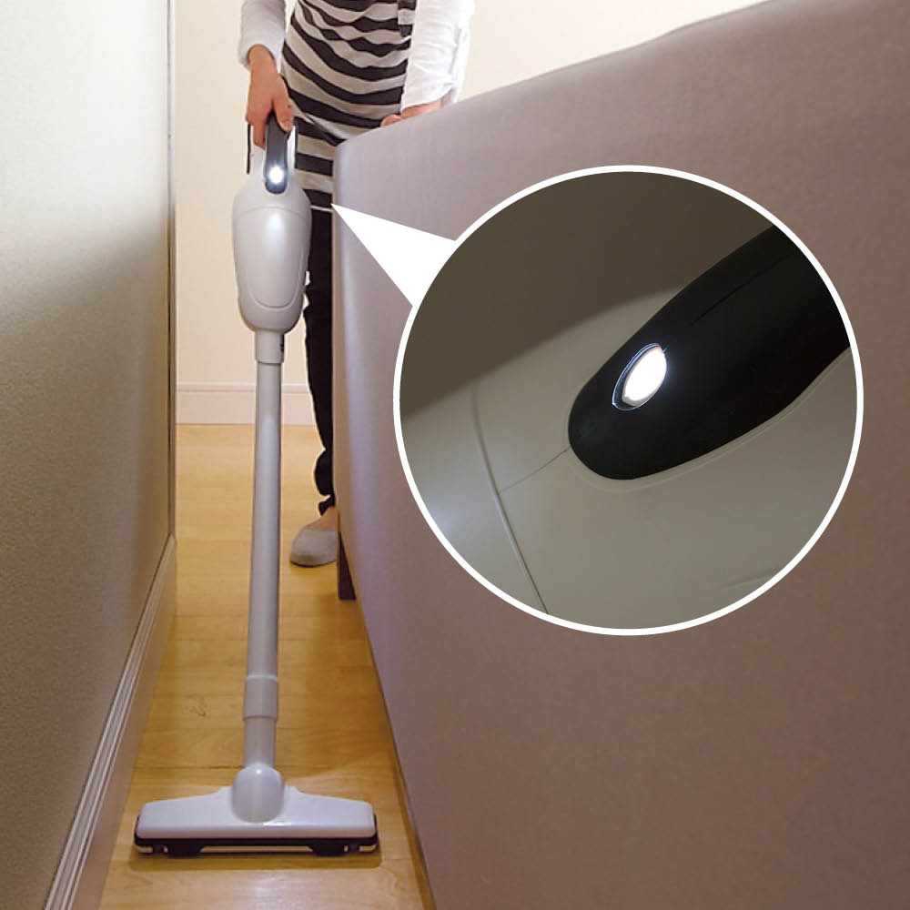 LEDヘッドライト搭載により、家具の下や隙間など薄暗い場所のゴミも見逃しません。見えづらいゴミを照らしてしっかり吸い取ります。