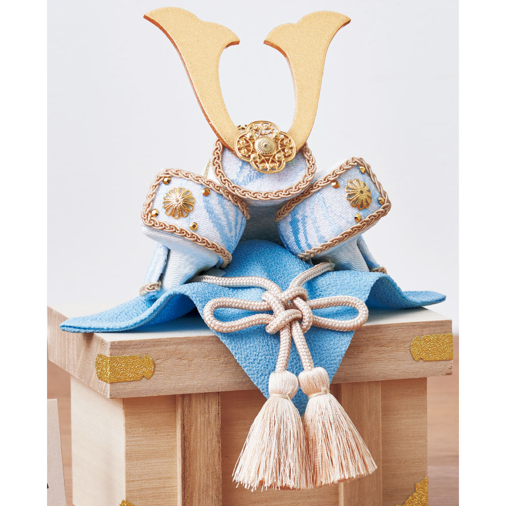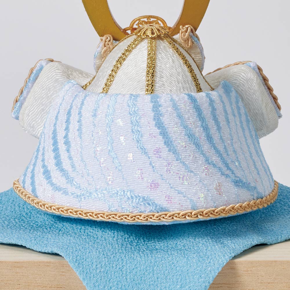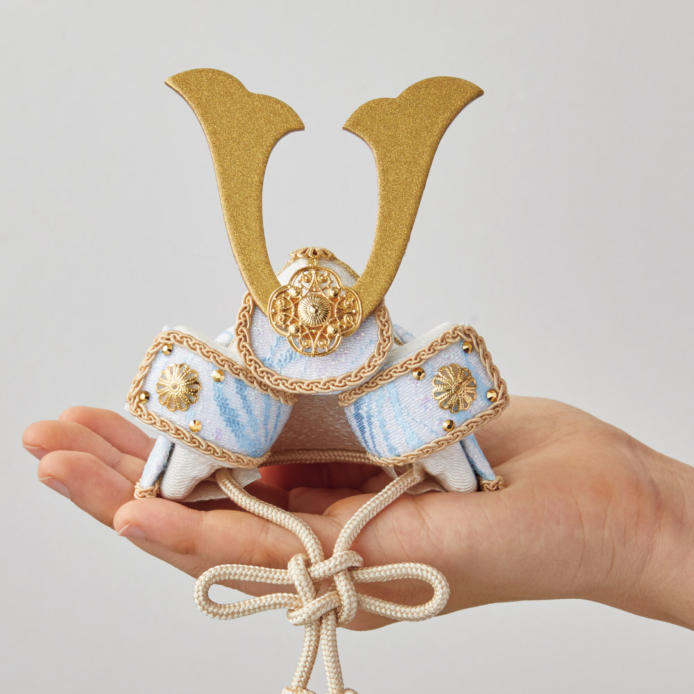 神聖な色とされる白に、ジャカード織の色を効かせた新デザインの兜飾り。