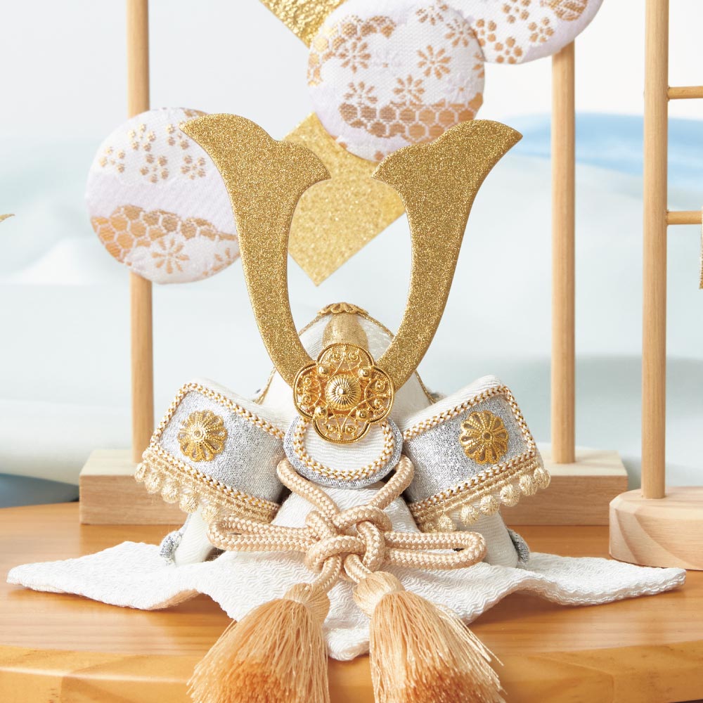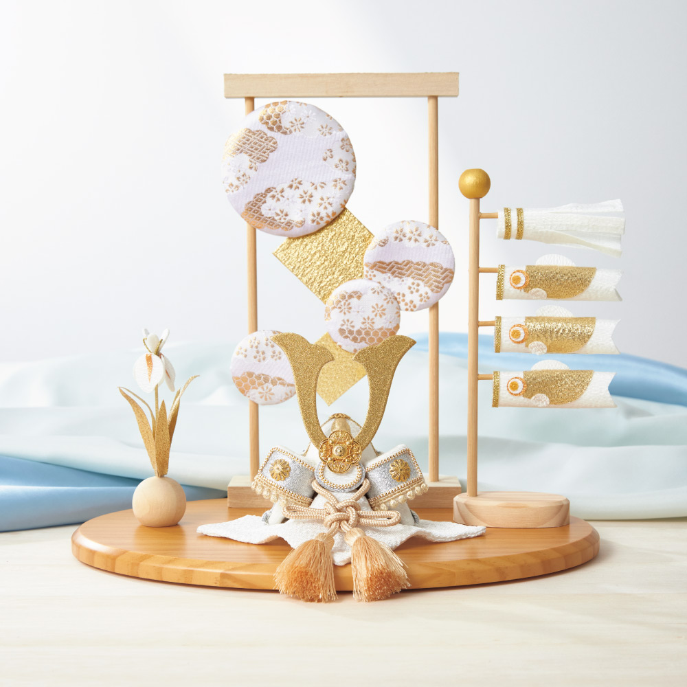 高級感のあるホワイト×ゴールド×シルバーの組み合わせの端午飾り