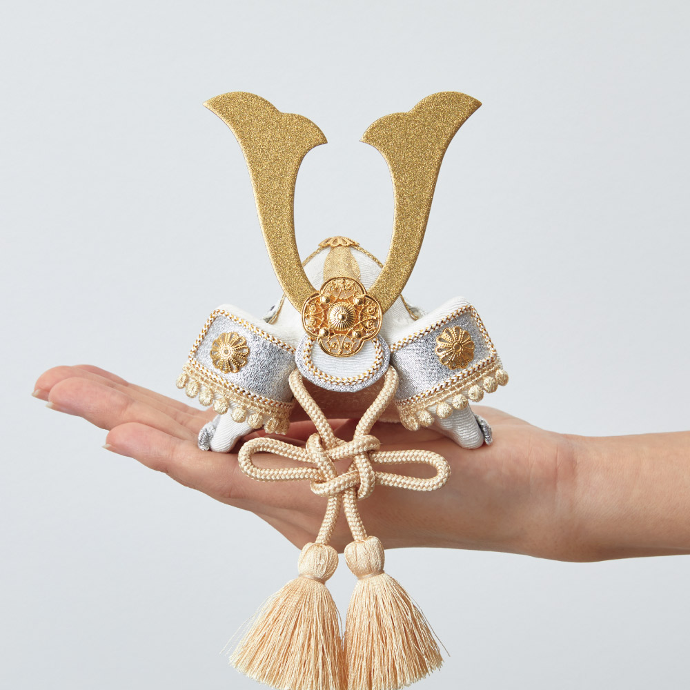 中央には、シルバーで高級感と存在感のある兜飾り。