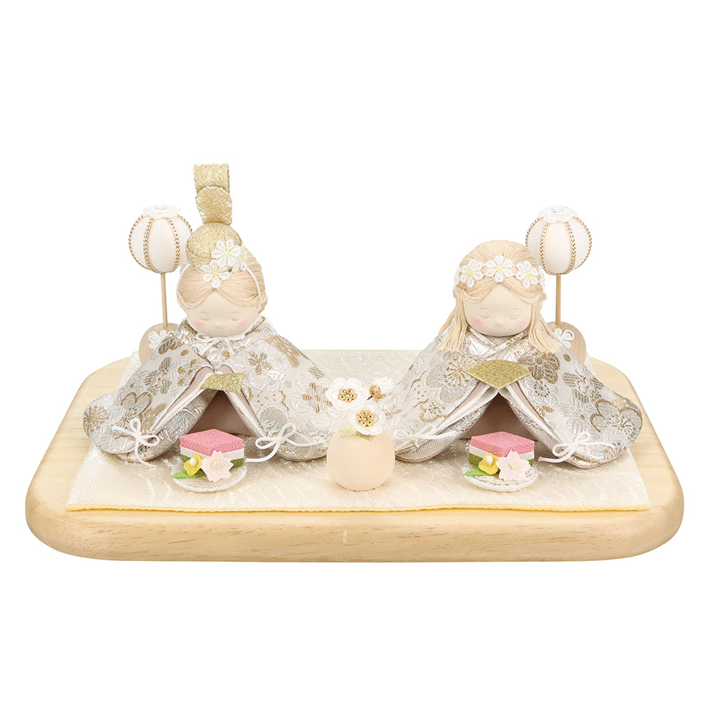 ■セット内容:男雛1・女雛1・木製台1・ぼんぼり1対・飾り花1・菱餅2・敷布1