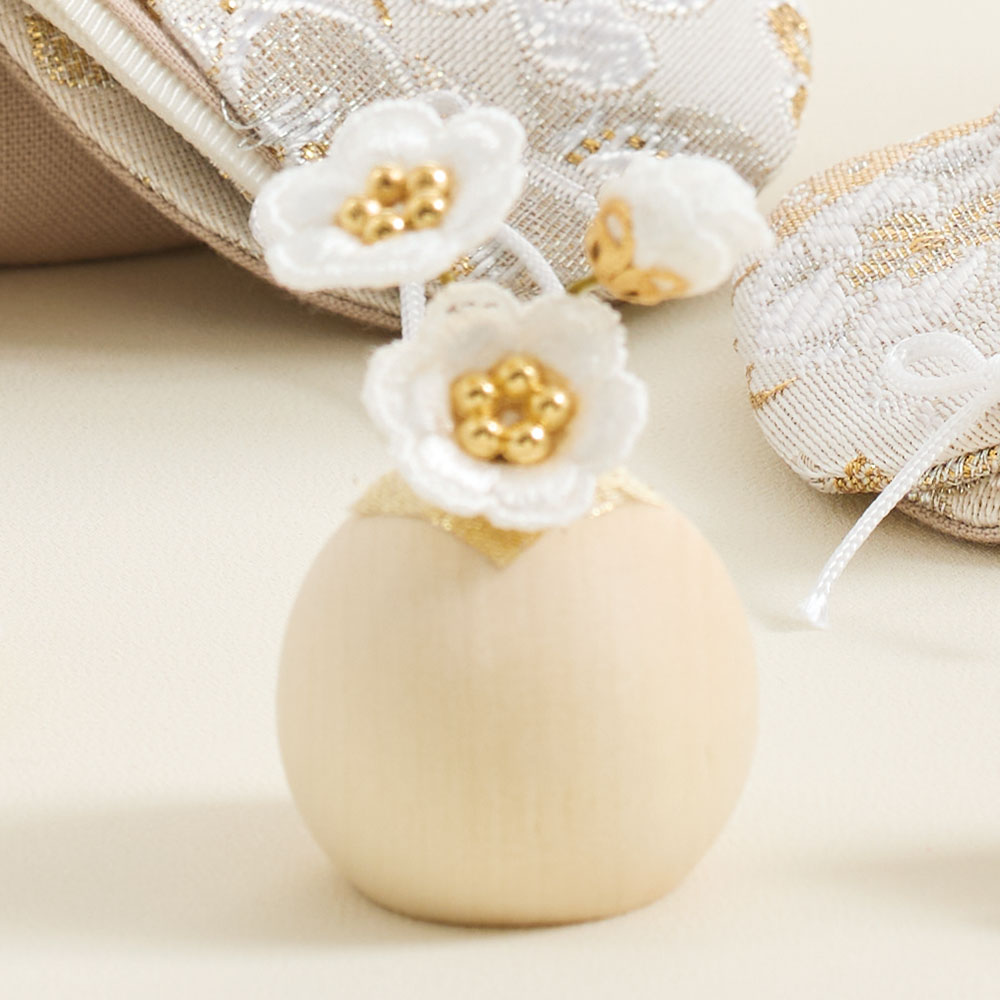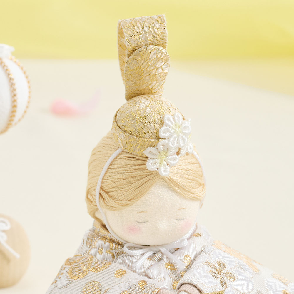 お雛様が被っている花かんむりは古くから「永遠の幸せ」、「永遠の愛」の象徴とされています。丸い形は途切れることのない絆を表し、花々は生命力と豊さ、美しさを象徴しています。