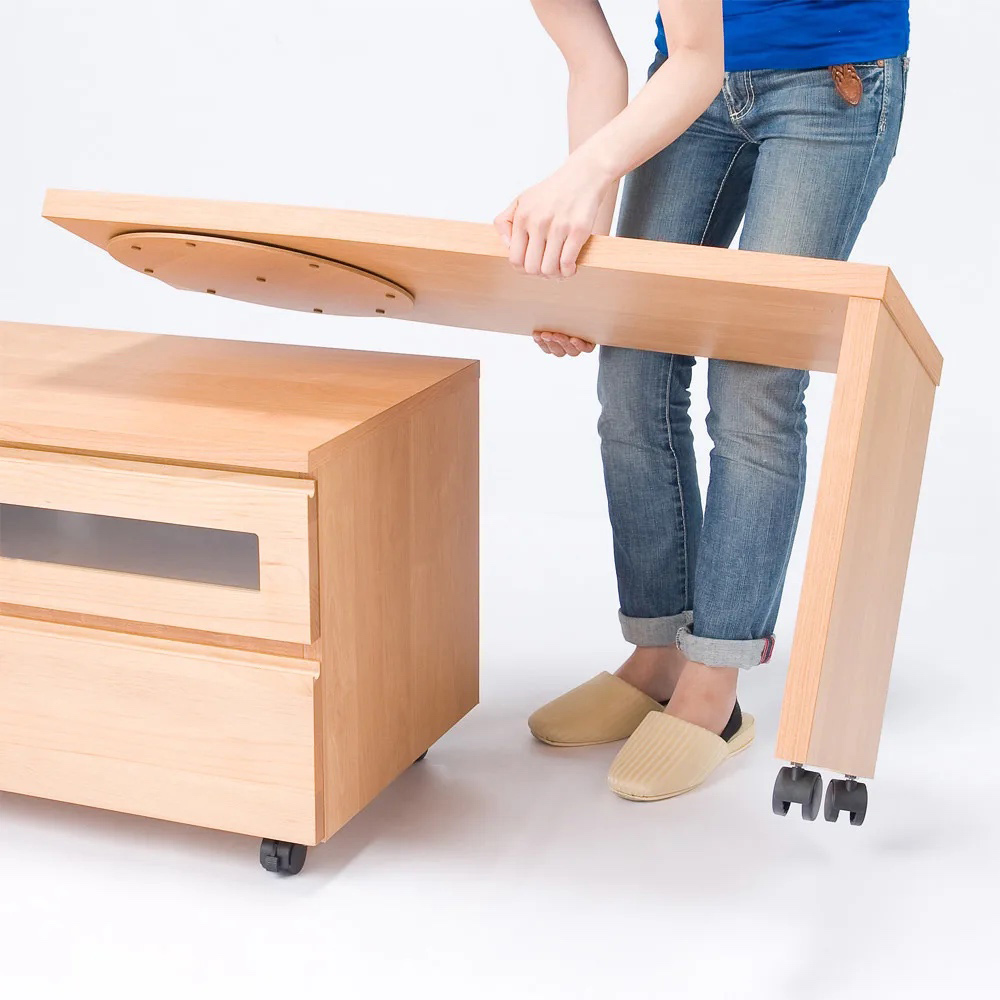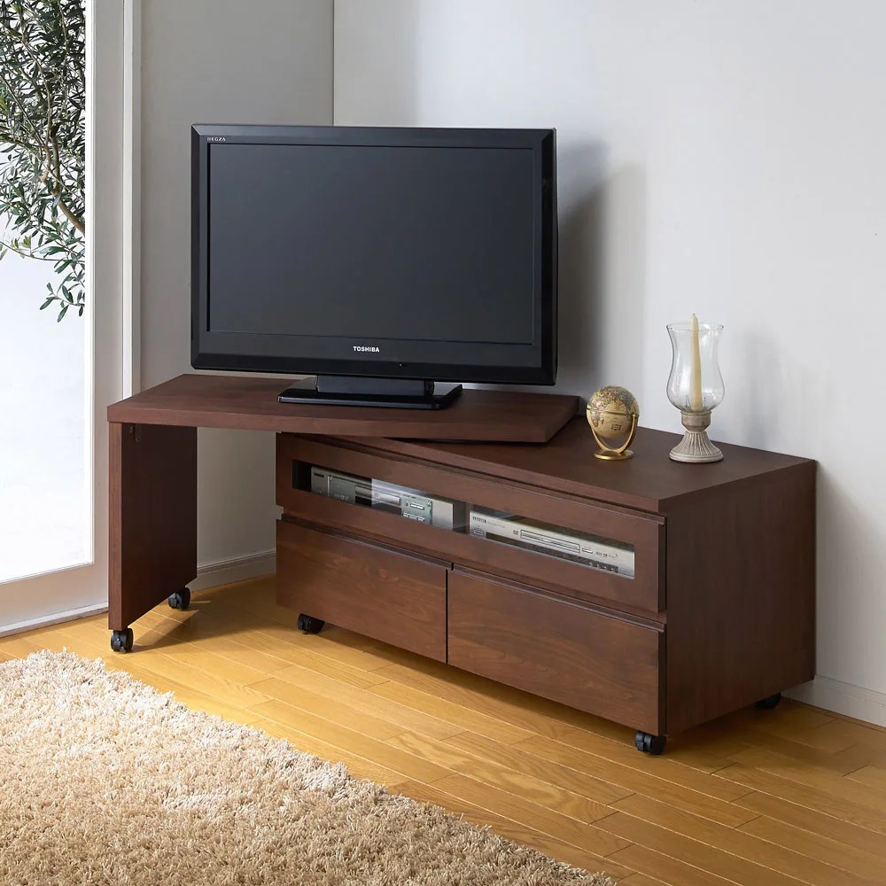 ●テレビ台に組み合わせて、伸縮、角度調節可能なコーナーテレビ台使用が実現するスイング天板ネストボードは、幅90cm、幅110cmの2タイプ。