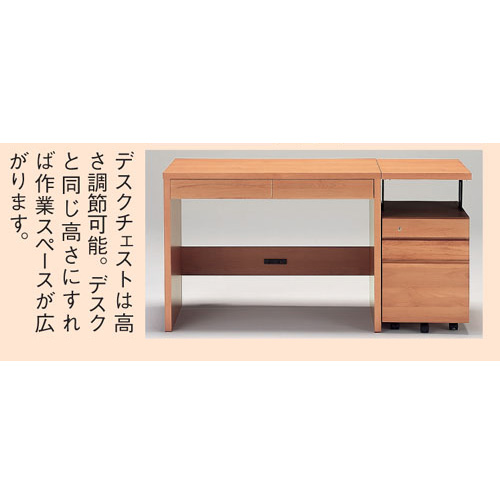デスクチェストは昇降式。デスク(別売り)の高さと合わせれば、広い作業面を確保できます。