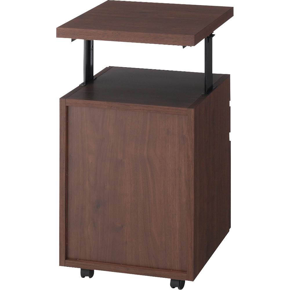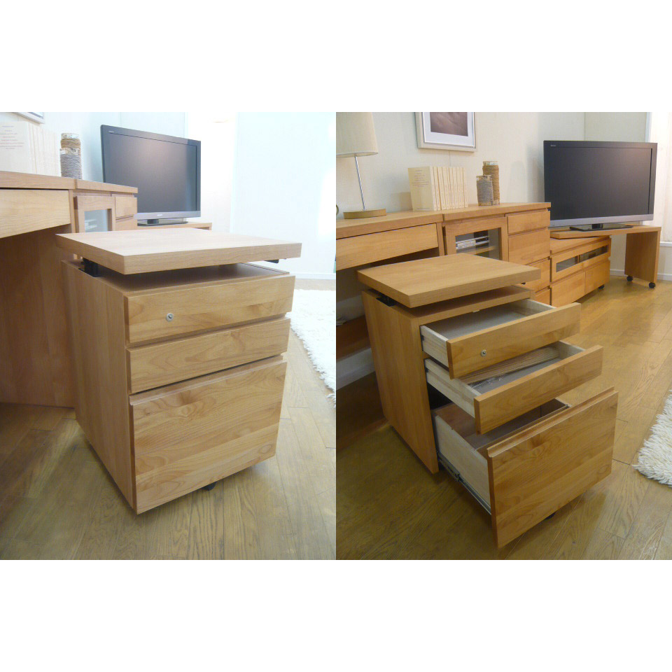 移動しやすいキャスター付きアルダー天然木 天板昇降式デスクチェスト サイド 脇机 机 628431