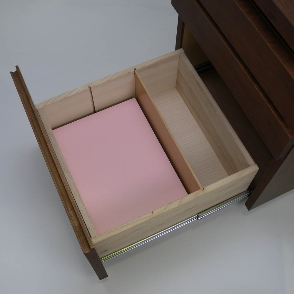 最下段の引き出しには移動式の仕切り板付き。