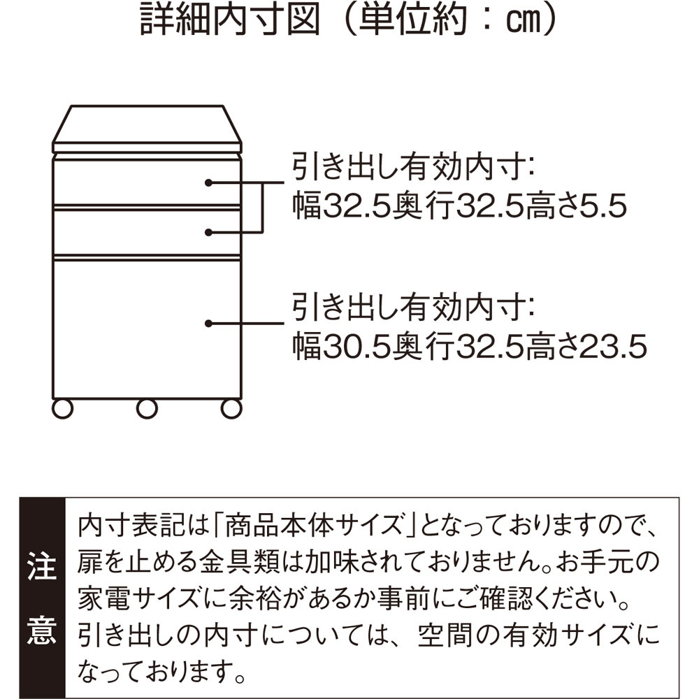 ■幅41cm奥行44.5cm高さ60cm~73.5cm、引き出し奥行33cm・重量約18kg