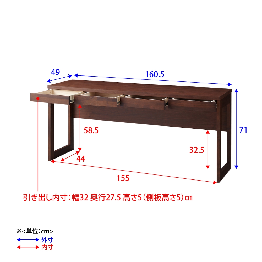 ■サイズ:幅160.5奥行49(端:46cm)高さ71cm・重さ約40kg