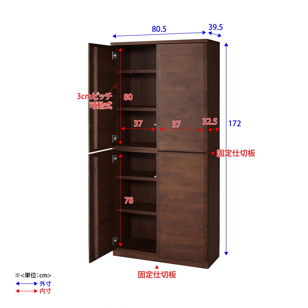 ■扉内寸(上):幅37奥行32.5高さ80cm(ちょうばん含む有効内寸は、幅34奥行27高さ80cm)