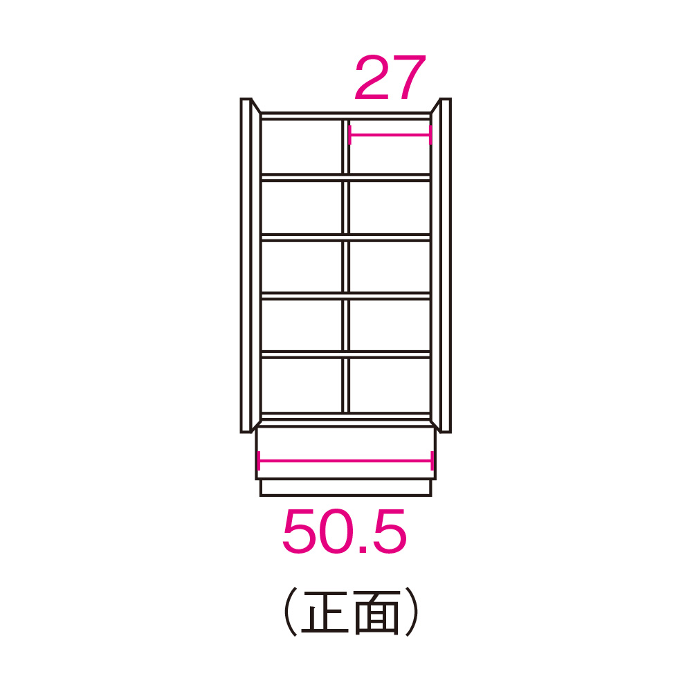 • (正面)※赤文字は内寸(単位:cm) ※写真は幅60cmミドルタイプ