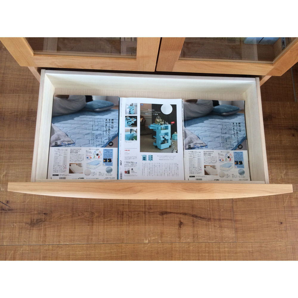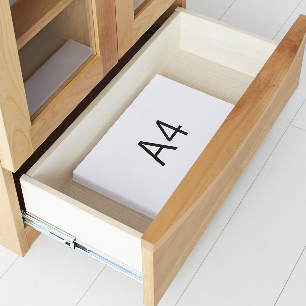 • 引き出しはA4を並べられて収納力があります。引き出し内寸:幅67奥行32高さ16(側板高さ10cm)