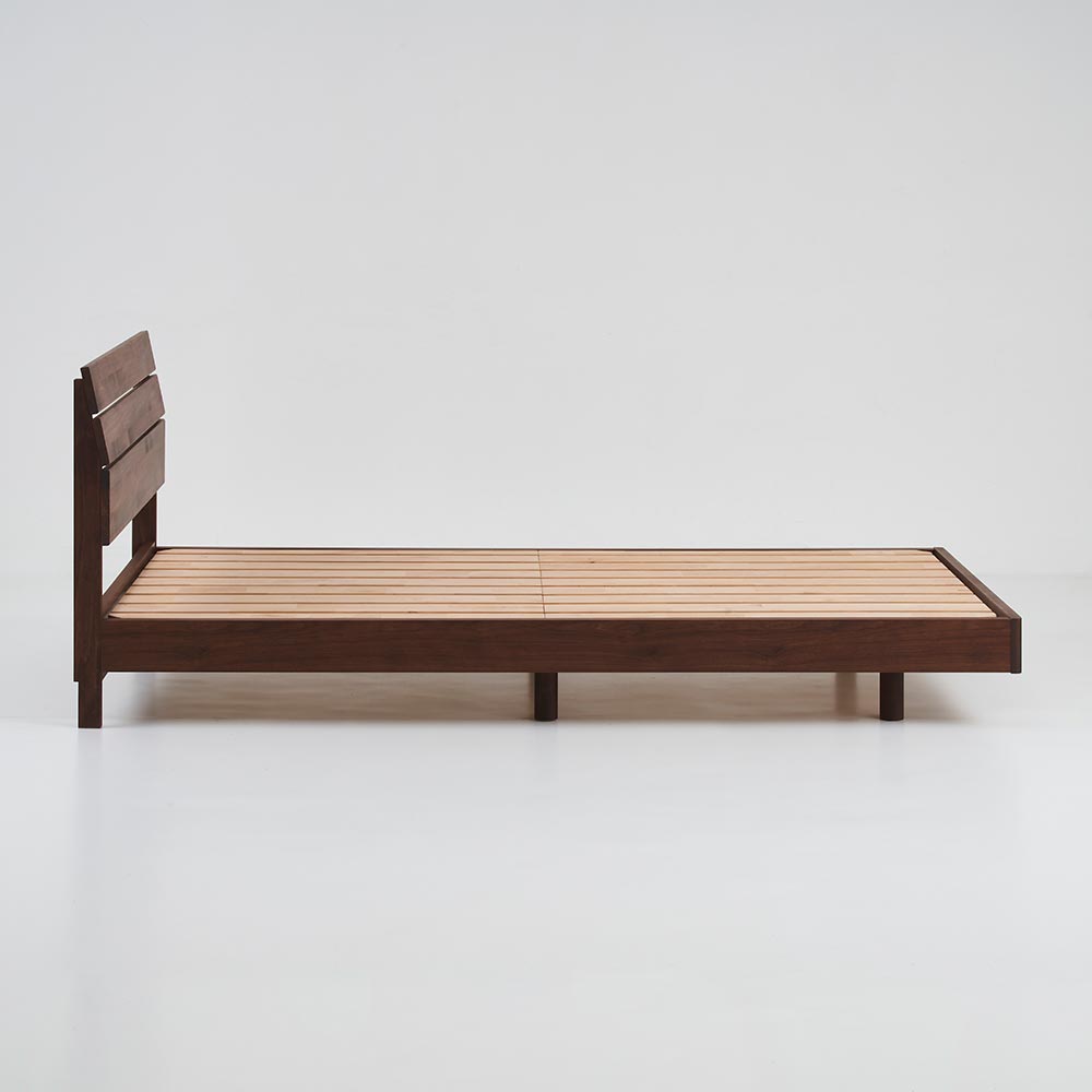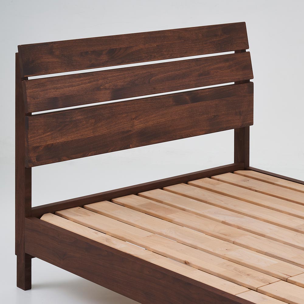 ・幅広のアルダー無垢材を使用したヘッドボードのデザインは飽きることなく長くご愛用いただけます。・足元のフットボードの角は丸く仕上げました。見た目の美しさだけでなく 安全性も考慮したデザインでお子様やお年寄りでも安心してお使いいただけます。