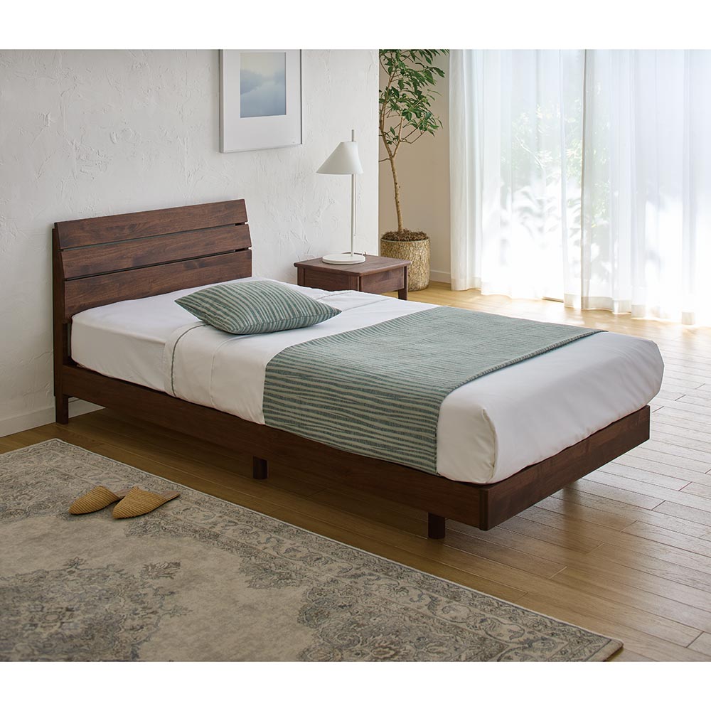 コーディネート例(イ)ブラウン ※写真はシングルサイズ ※お届けはベッドフレームのみです。
