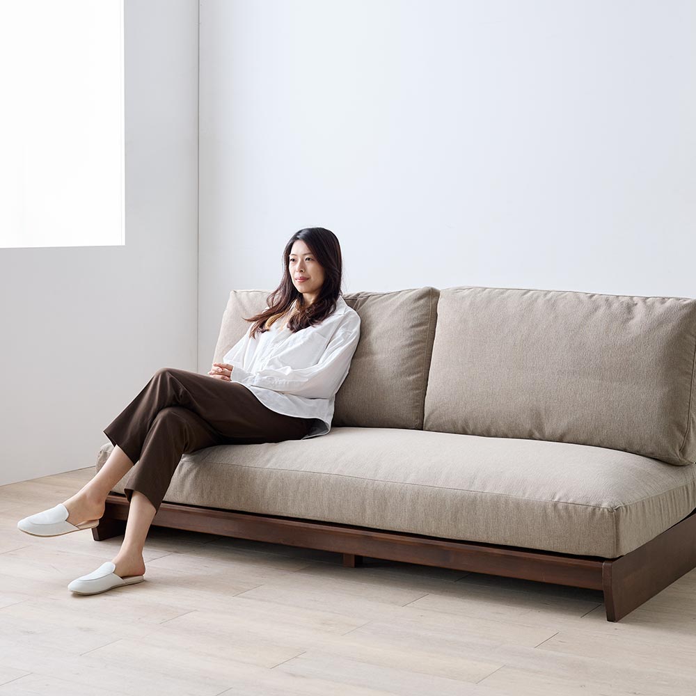 座部は深めの奥行き、クッションにはたっぷりのフェザーを使用し、包み込まれるような座り心地を提供します。