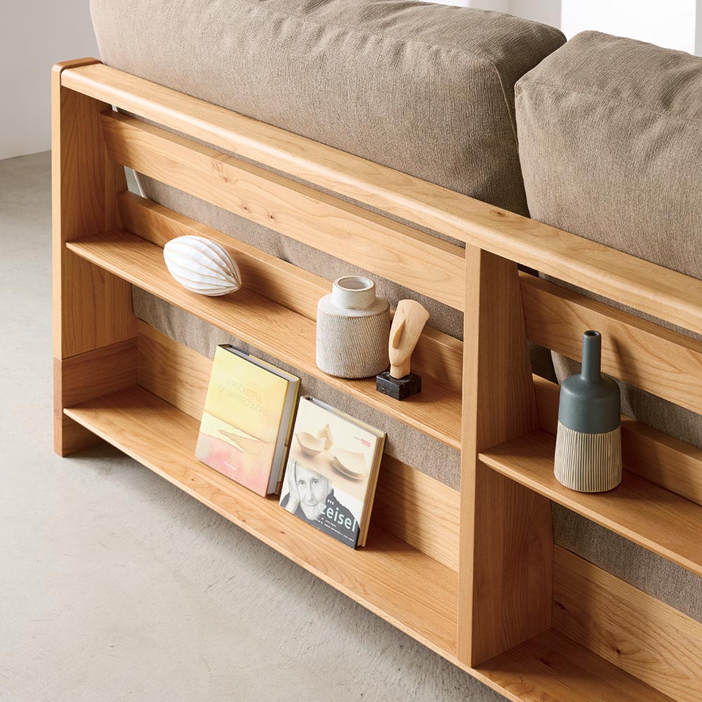 ソファ後ろに小棚があり、背面の見える配置で見映える仕様。