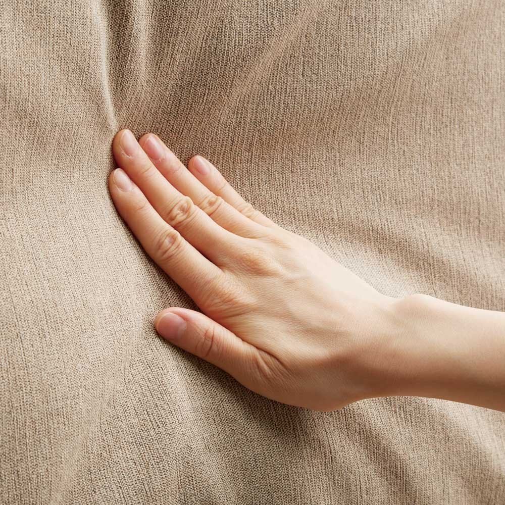 クッションのカバーには、高い風合いと機能性(撥水加工・防汚加工・耐引っかき)を兼ね備えたイタリア製ファブリックを使用。
