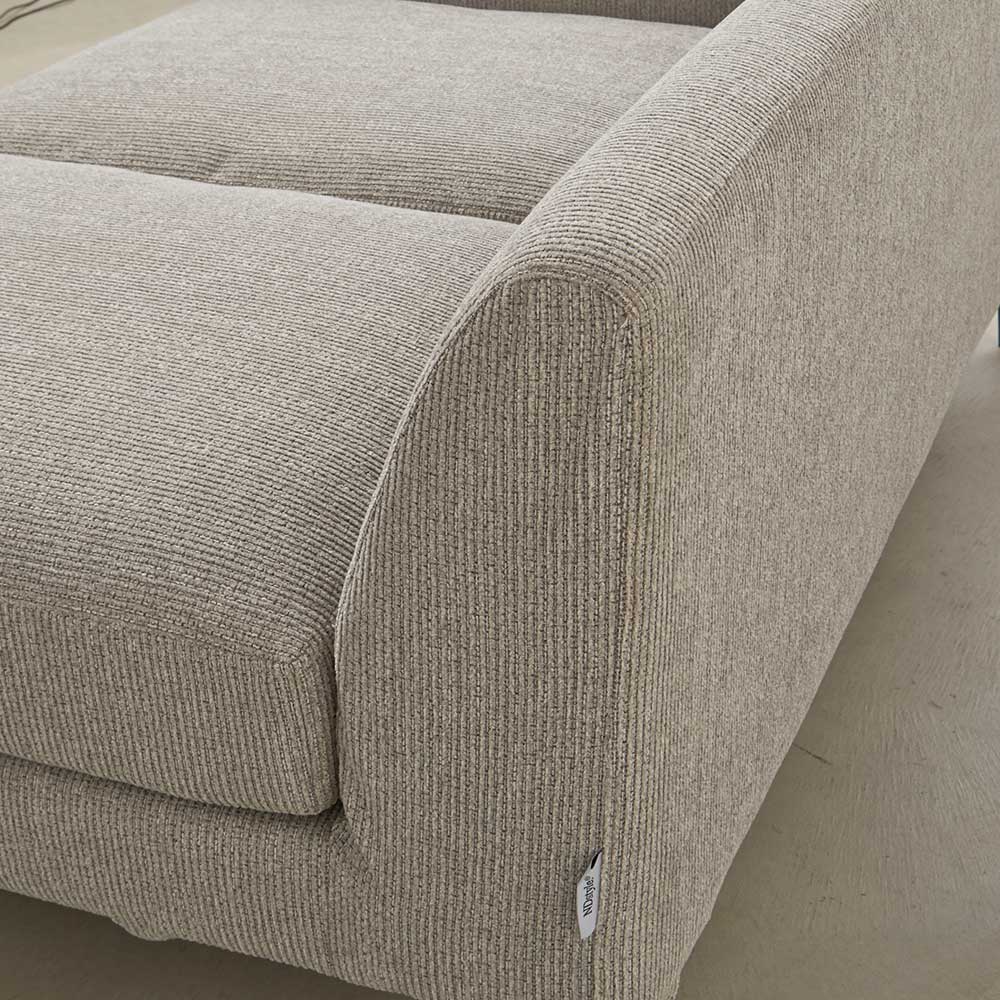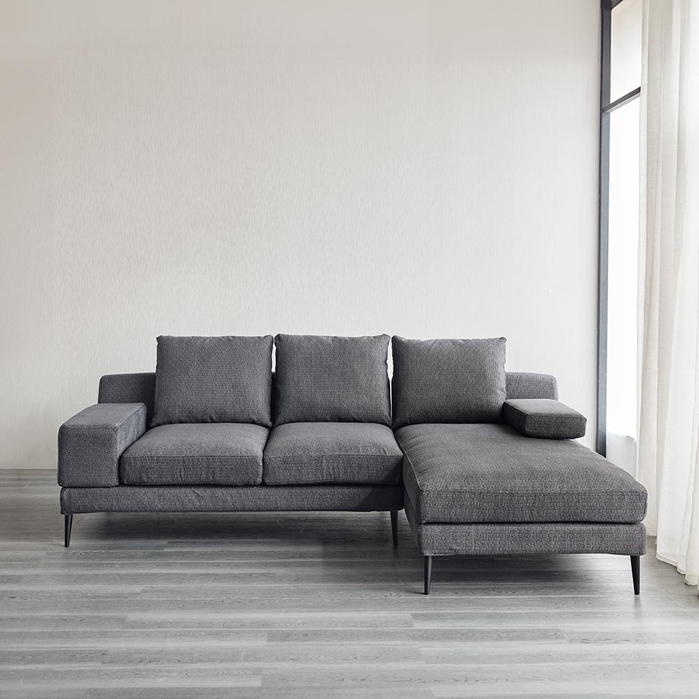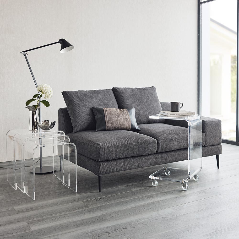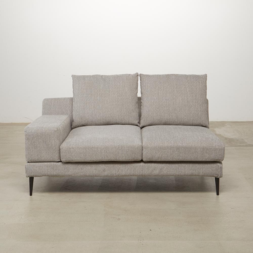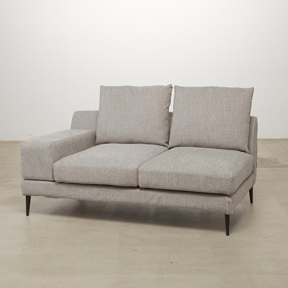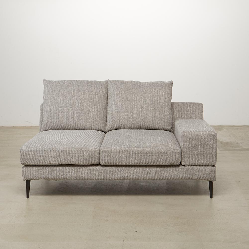 シリーズのソファ3P・ソファ2Pには着脱式アーム、シェーズロングにはアームクッションが付属しており、アームの配置によって、使い勝手やソファアイテムのレイアウトに様々なバリエーションが生まれます。シンプルなアイテム構成でありながら、過ごし方の自由度が高いソファシリーズです。張地は2色展開で撥水効果があり、手洗いできるカバーリング仕様です。