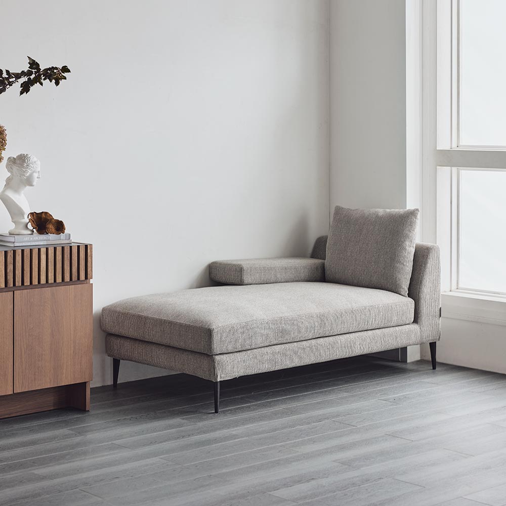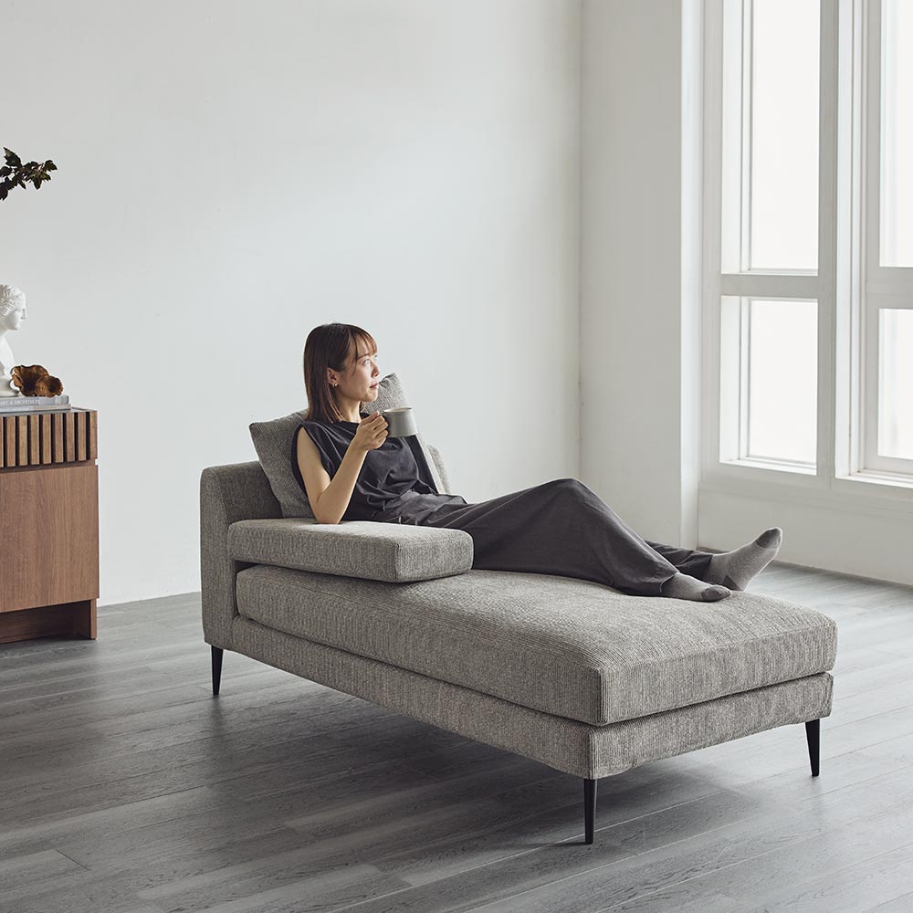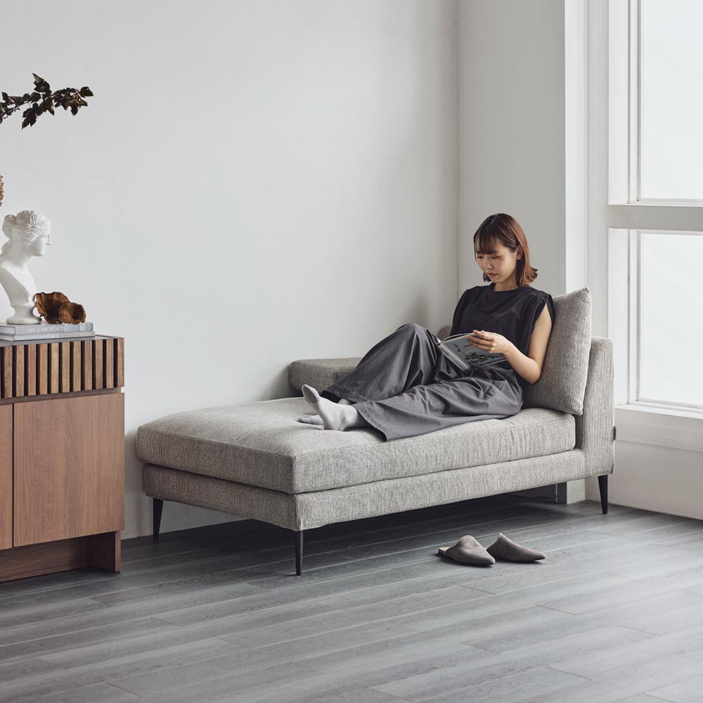 シリーズのソファ3P・ソファ2Pには着脱式アーム、シェーズロングにはアームクッションが付属しており、アームの配置によって、使い勝手やソファアイテムのレイアウトに様々なバリエーションが生まれます。シンプルなアイテム構成でありながら、過ごし方の自由度が高いソファシリーズです。張地は2色展開で撥水効果があり、手洗いできるカバーリング仕様です。