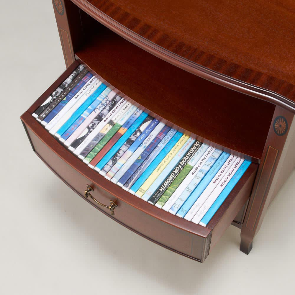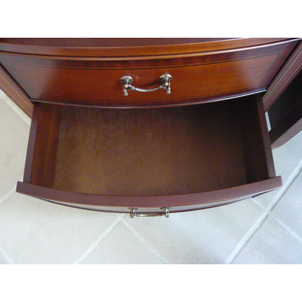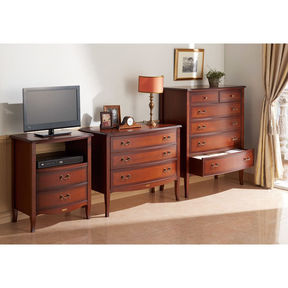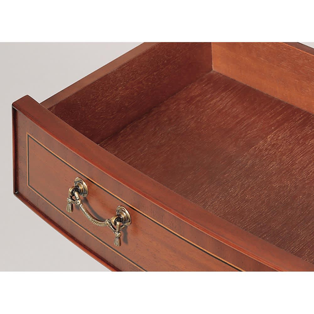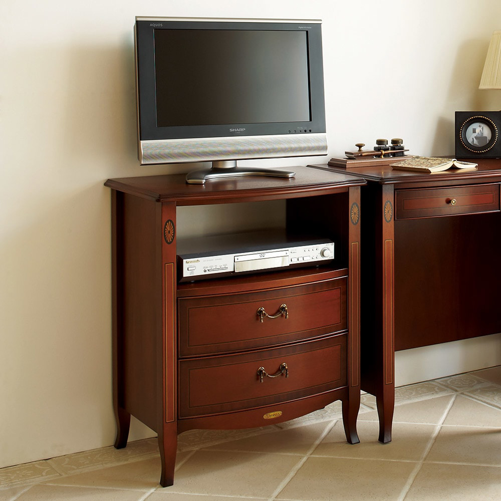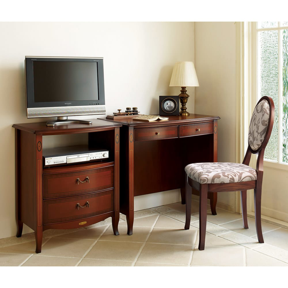 繊細な木肌のマホガニー材を17世紀中期の「ネオクラシックスタイル」を基本とした、コンパクトタイプのアクセント家具の提案です。卓越した職人の「技」による象がん細工の繊細さと、緩やかな曲線のフロントラインを活かしたデザインに、落ち着いたアンティーク仕上げの装いは、伝統的なヨーロッパの格式と優美さを醸し出し、クラシカルな魅力に溢れたインテリアを充実させます。