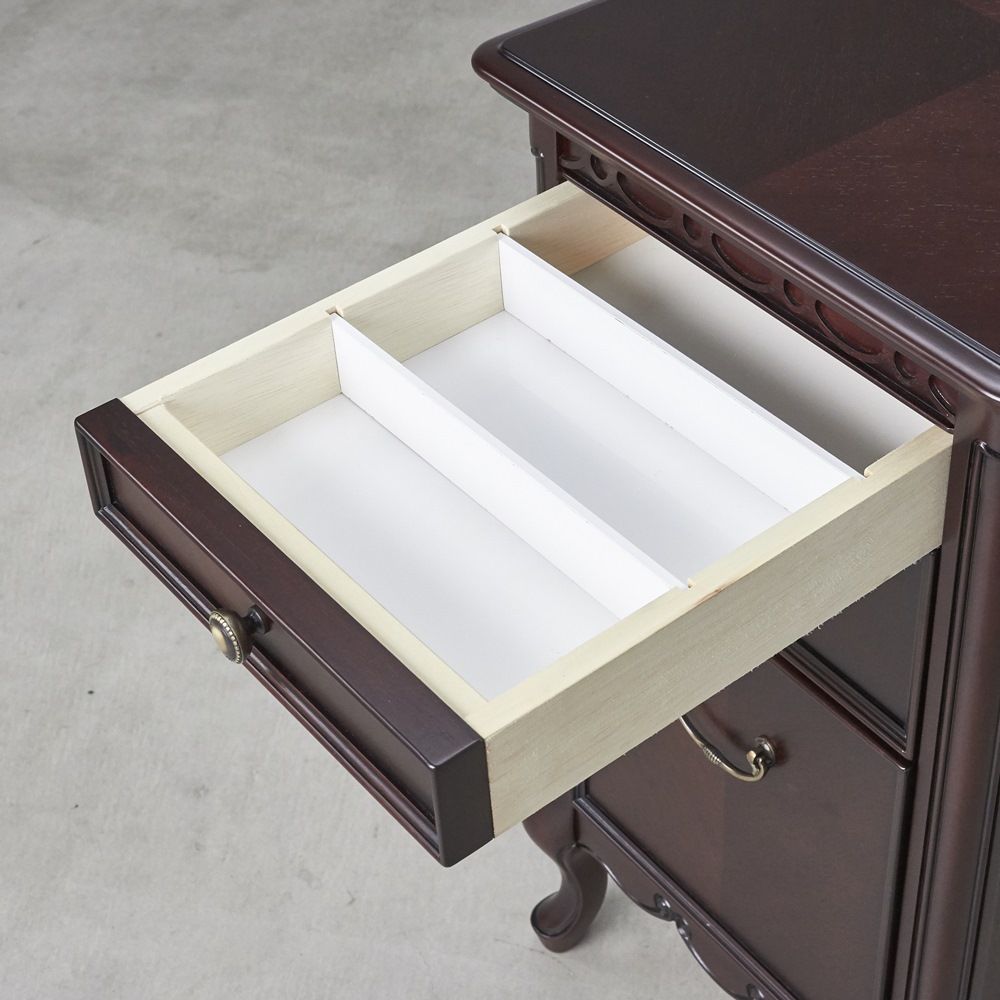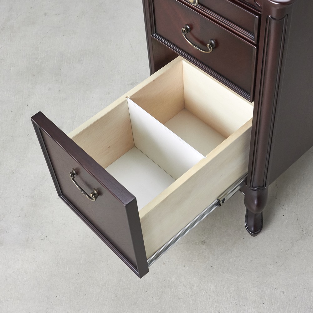 ■アンティークな雰囲気を演出するおしゃれな収納家具です。■高級家具の代名詞的な素材:マホガニーの特徴を生かした格調の高い仕上がりになっています。