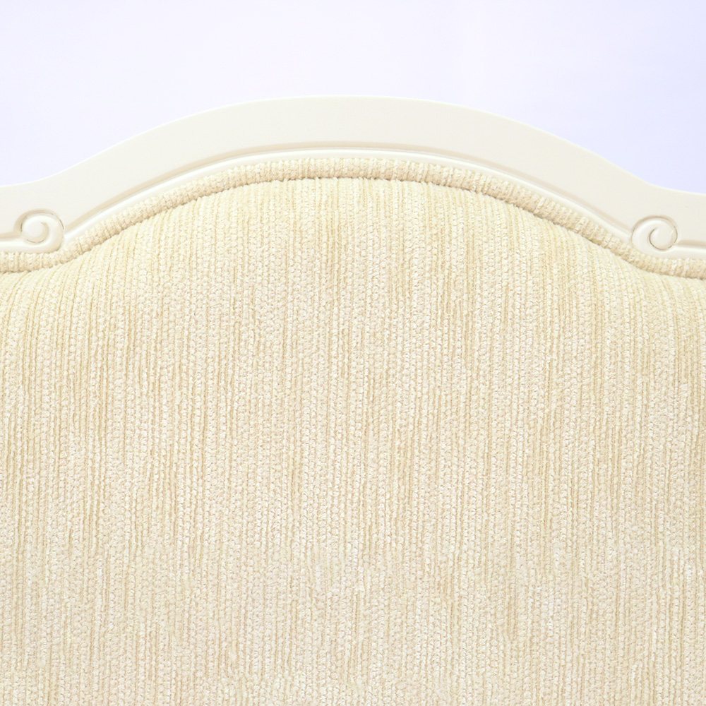 ゆるやかにカーブした柔らかなラインとカブリオールレッグ(猫脚)と彫刻が上品な雰囲気と可愛らしさを際立たせています。