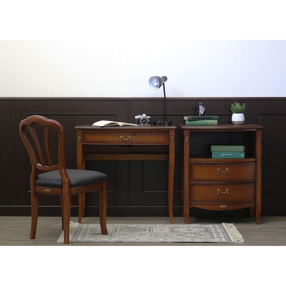 マンションなどの住まいを考慮し、限られた空間に無理なく設置できるコンパクトな設計です。同じシリーズの家具を揃えて、おしゃれなクラシック風のコーディネートが楽しめます。
