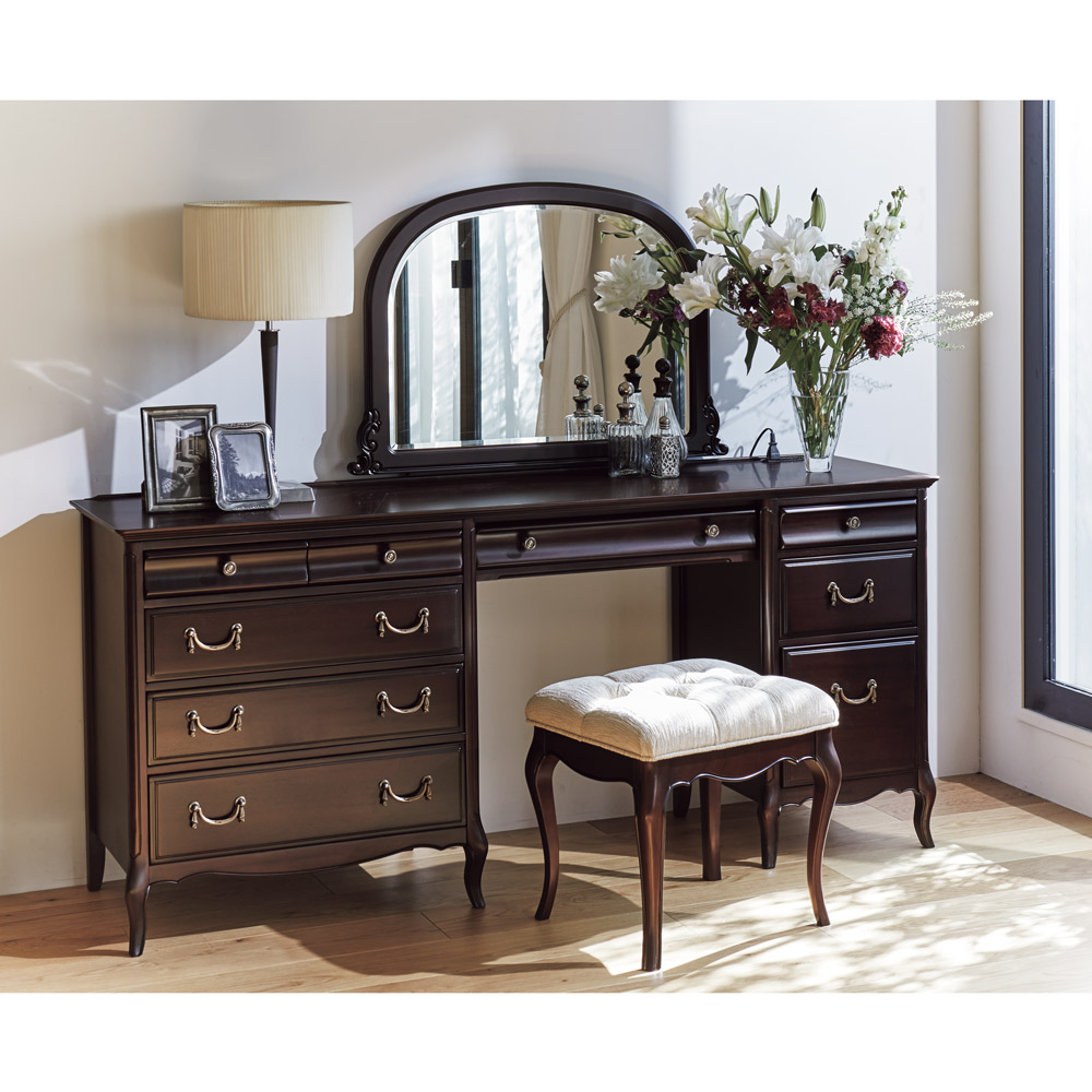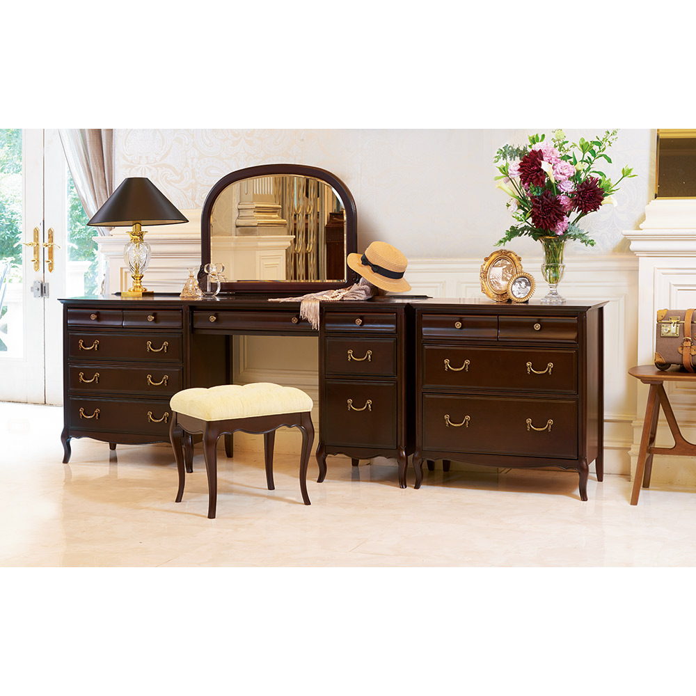• コーディネート例(イ)ダークブラウン 19世紀頃の優美なフレンチスタイルを再現しながら、使いやすさにもこだわりました。 ※お届けはスツールです。写真は別売りのドレッサーデスク・チェスト3段との組合せです。