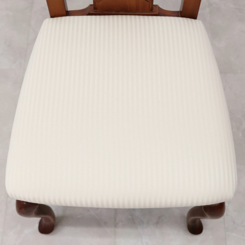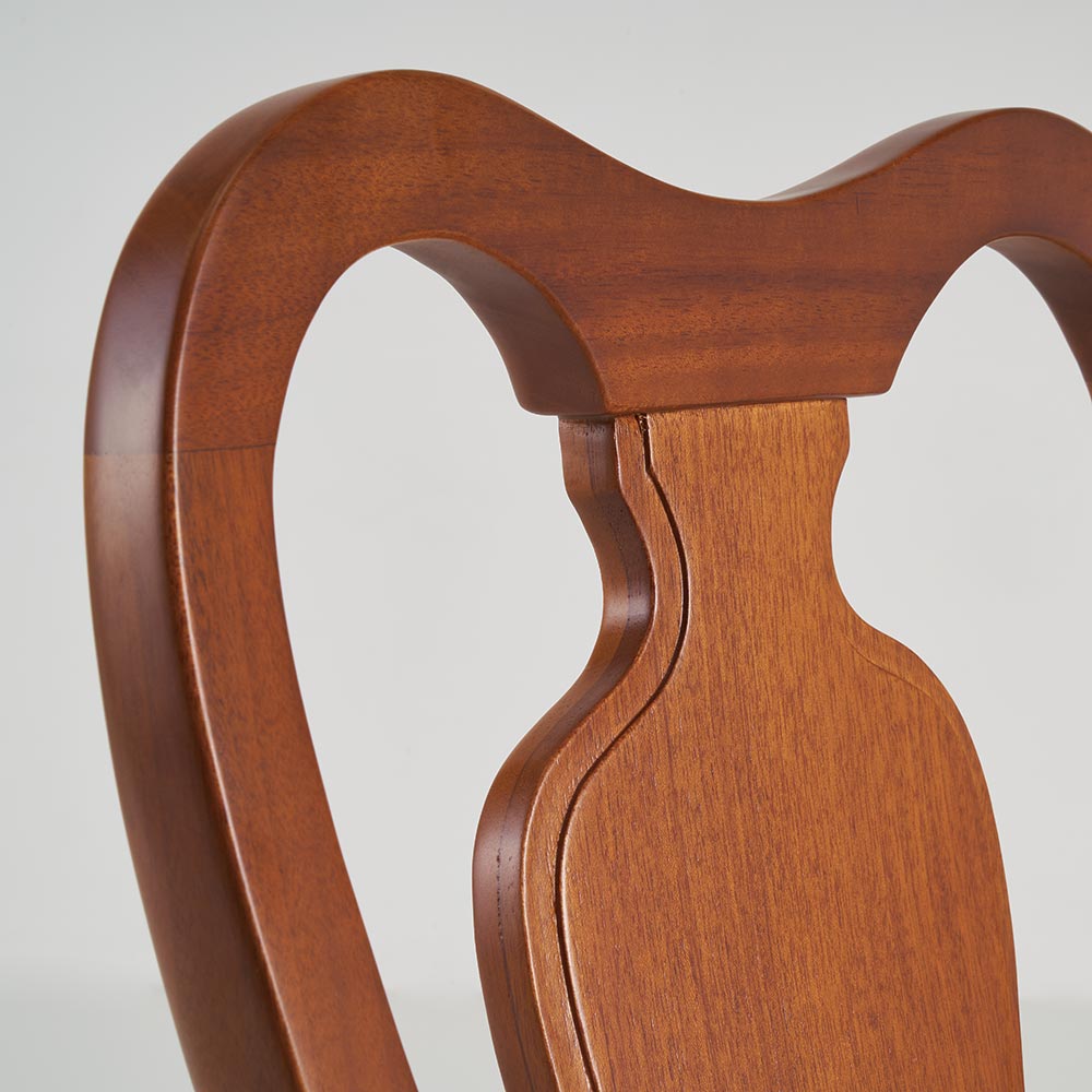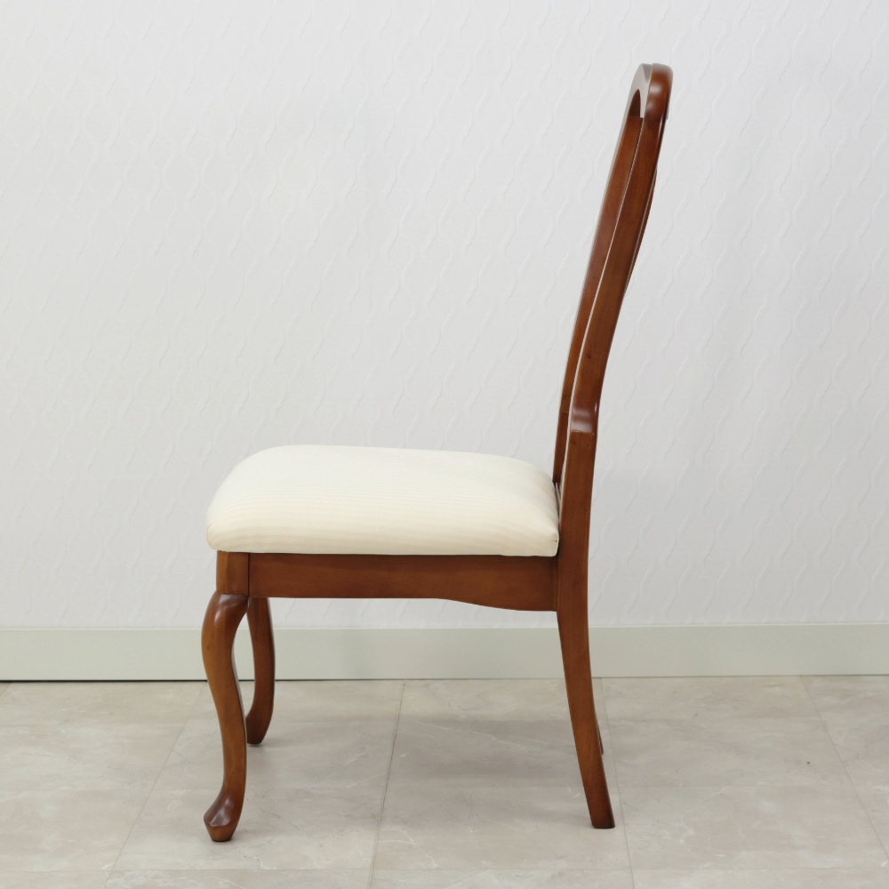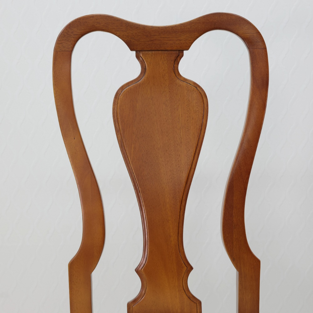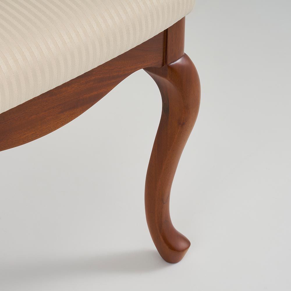 クイーンアン様式の特徴はカブリオールレッグ(カーブした脚部)。膝部分が膨らみ、足先が猫のつま先のような形をしたデザインです。
