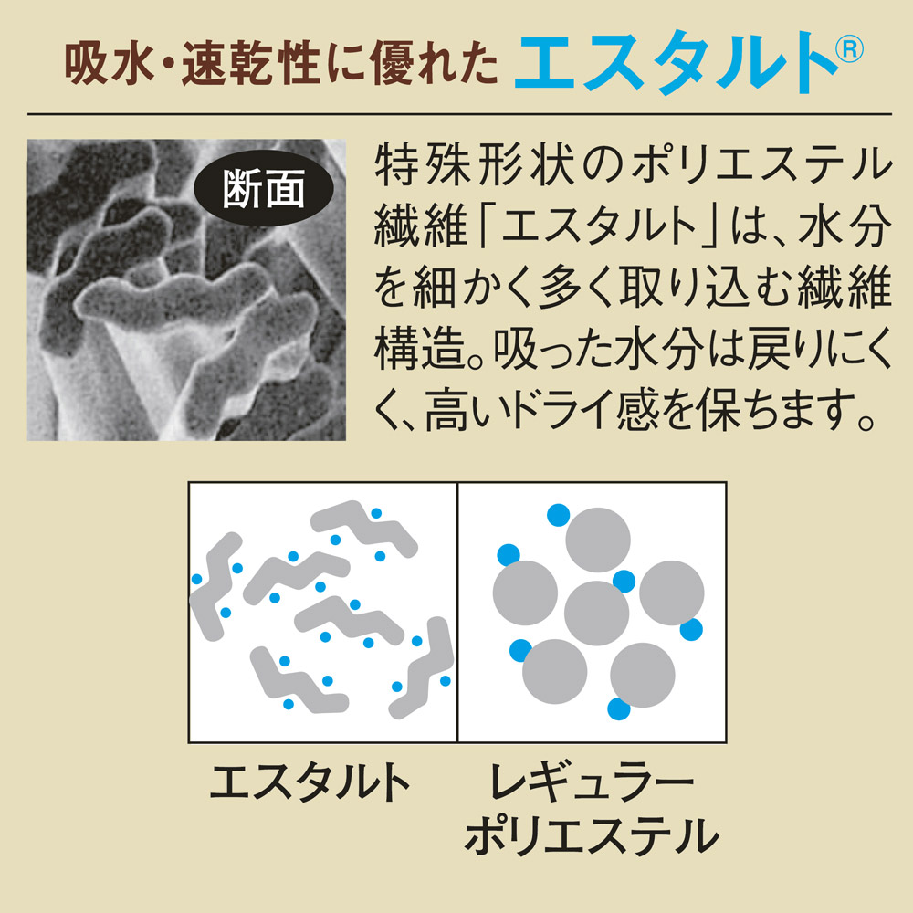 ●ポリエステル繊維「エスタルト(R)」を使って、ドライ感が持続
