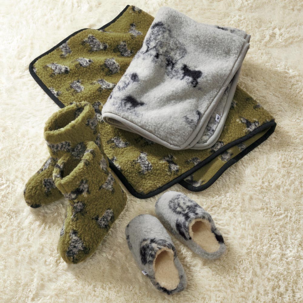 ひつじの柄もかわいい、高品質なウール100%のシープボア。