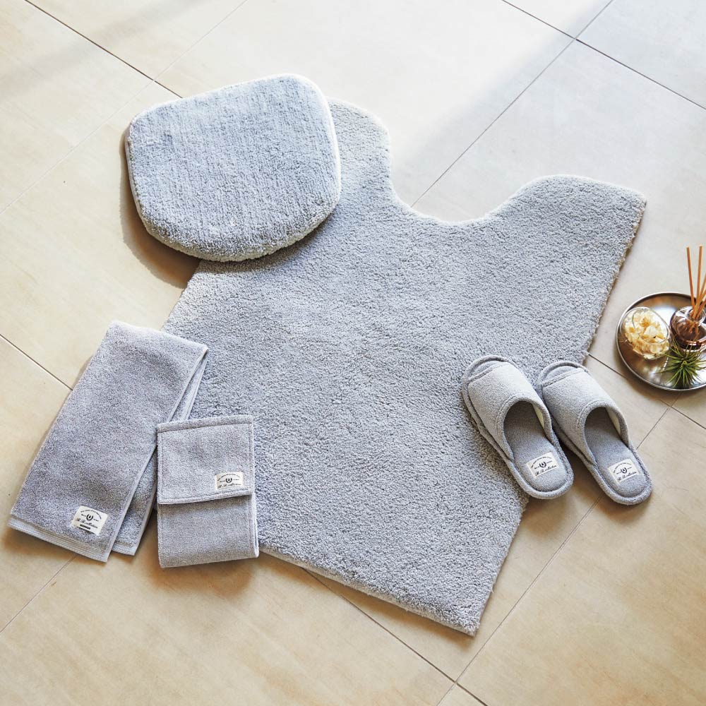 (ア)ライトグレー(写真はトイレマット約70×90cmのコーディネート) 弾力・感触・機能に優れたシンプルデザイン。ハイスペックなトイレタリーが居心地のよい空間に。 ※お届けはスリッパ1足のみになります。