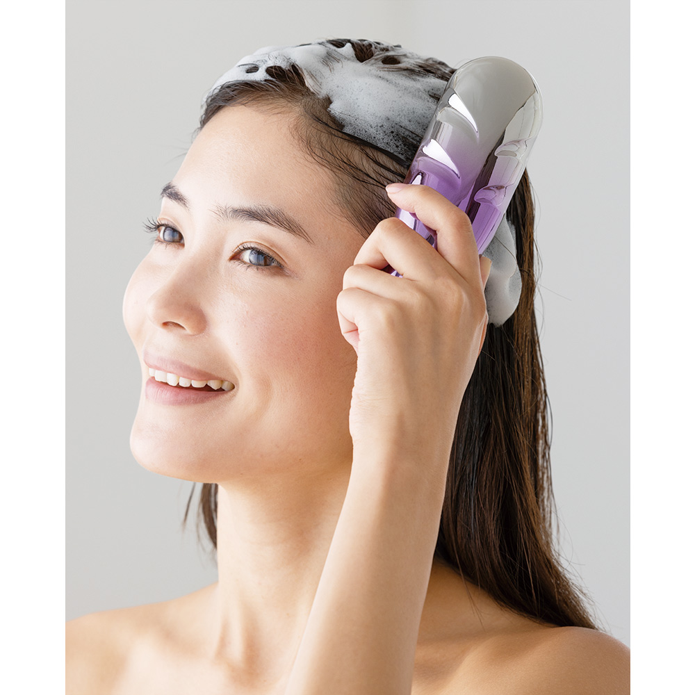 頭皮をしっかりととらえるEMSブラシ