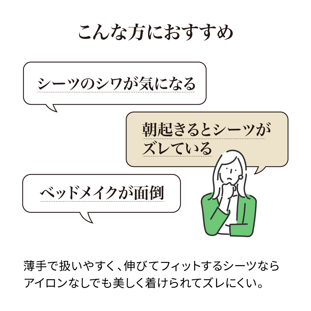 全方向に伸びるニット地だから、マットレスにも敷き布団にもお使いいただけます。手間なくシワなくフィットして、着けたままたためるのも使いやすさのポイント。