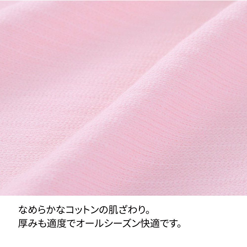 • ピンク生地アップ:なめらかなコットンの肌ざわり。厚みも適度でオールシーズン快適です。
