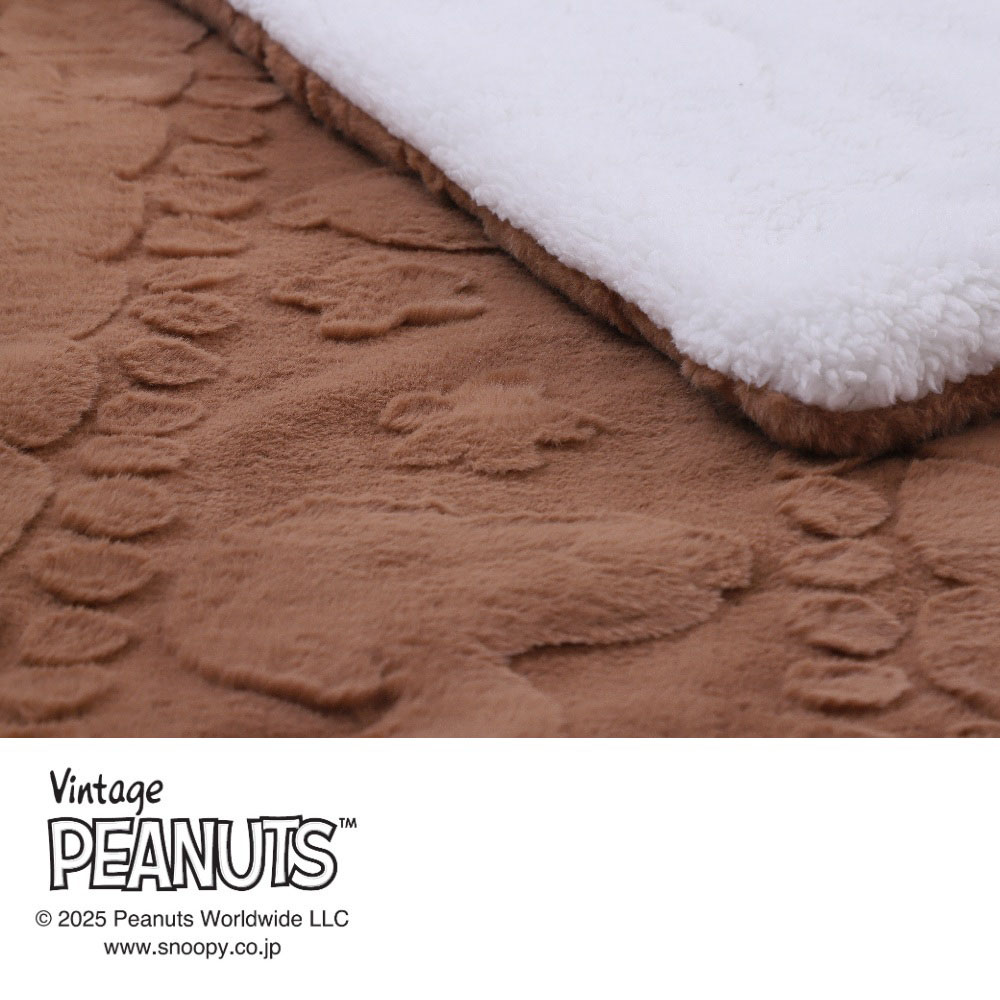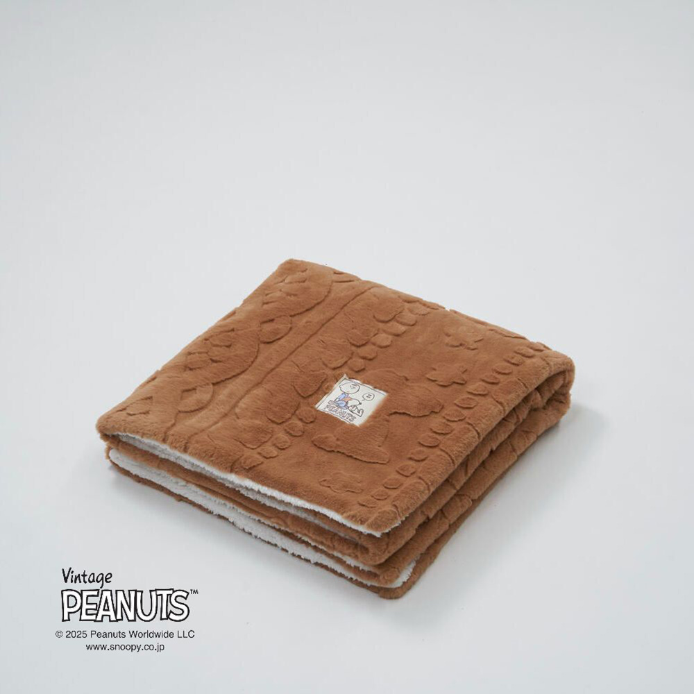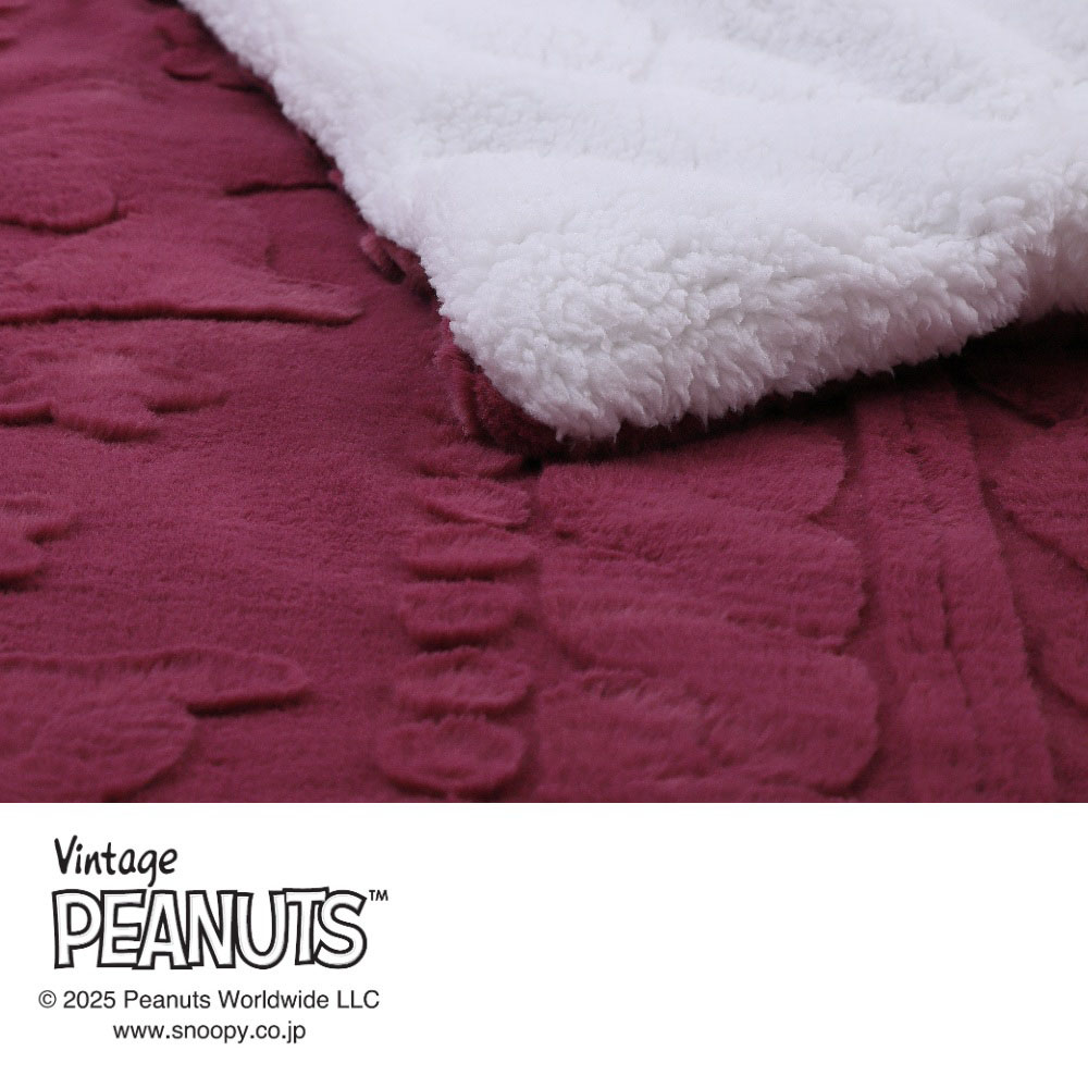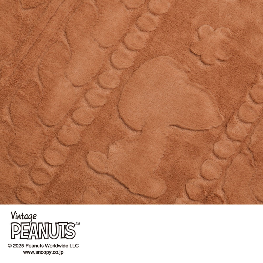 スヌーピーのシルエットが浮き出た凹凸感のある生地をお楽しみください。温もりを感じさせる色合いと肌に心地よいふわもこ素材で、冬のベッドルームをあたたかく彩ります。