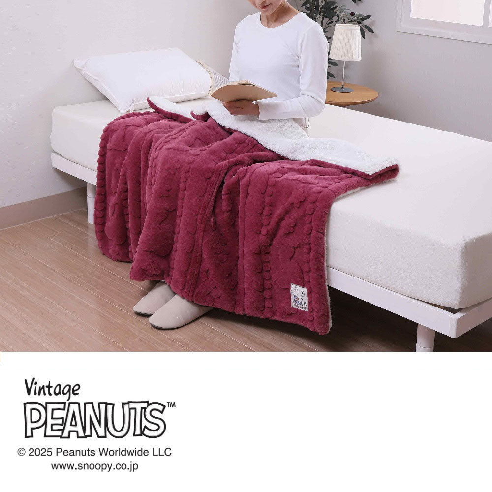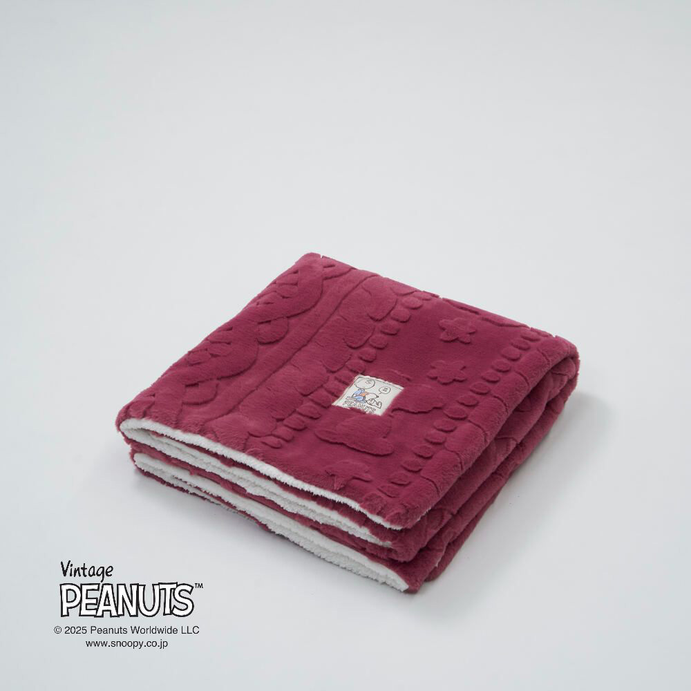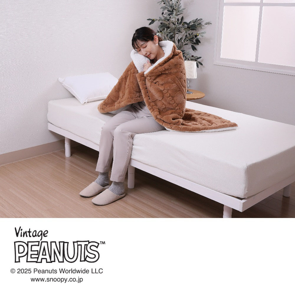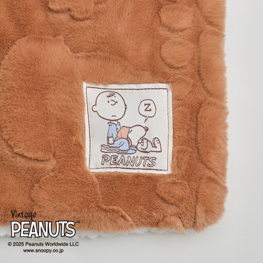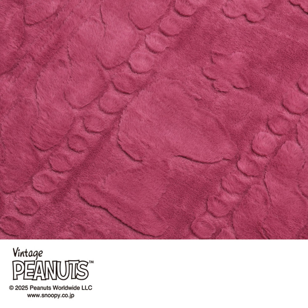 スヌーピーのシルエットが浮き出た凹凸感のある生地をお楽しみください。温もりを感じさせる色合いと肌に心地よいふわもこ素材で、冬のベッドルームをあたたかく彩ります。